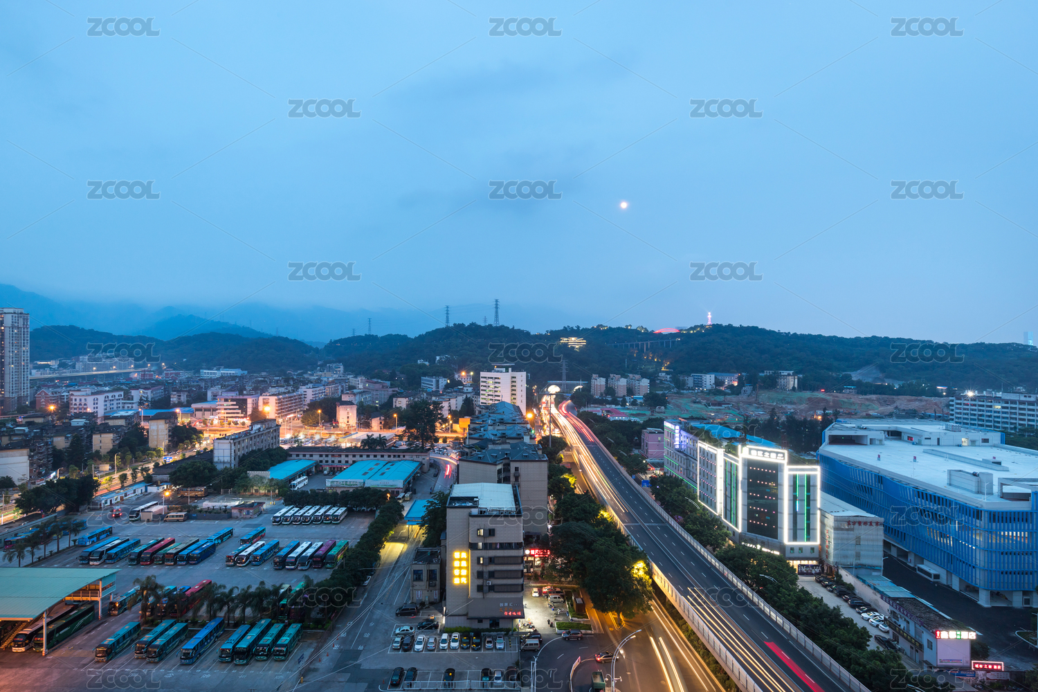 中国广东省深圳市龙岗区平湖建筑群傍晚风光