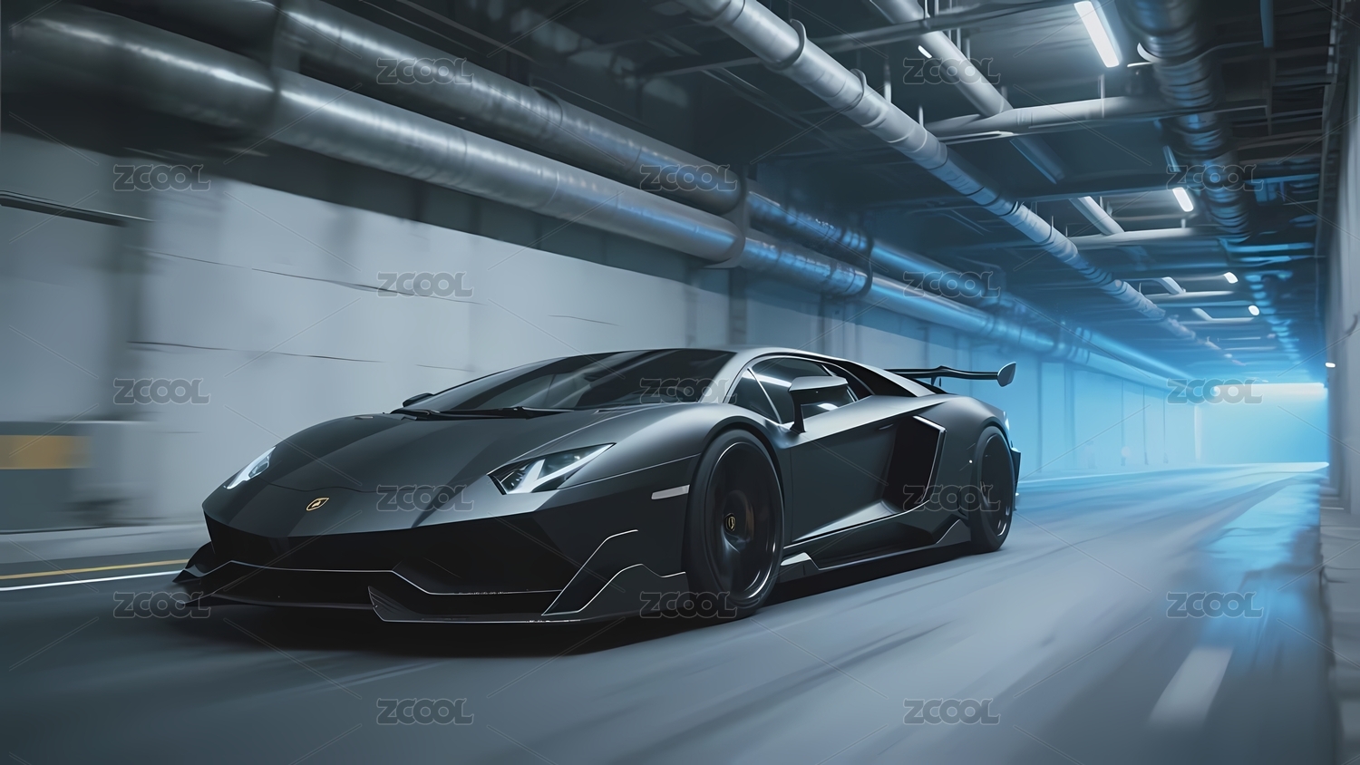 黑色跑车在地下隧道中行驶