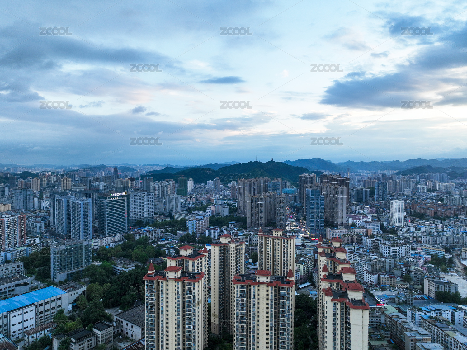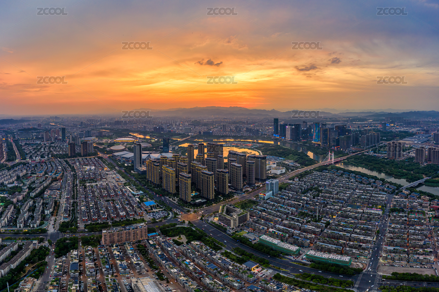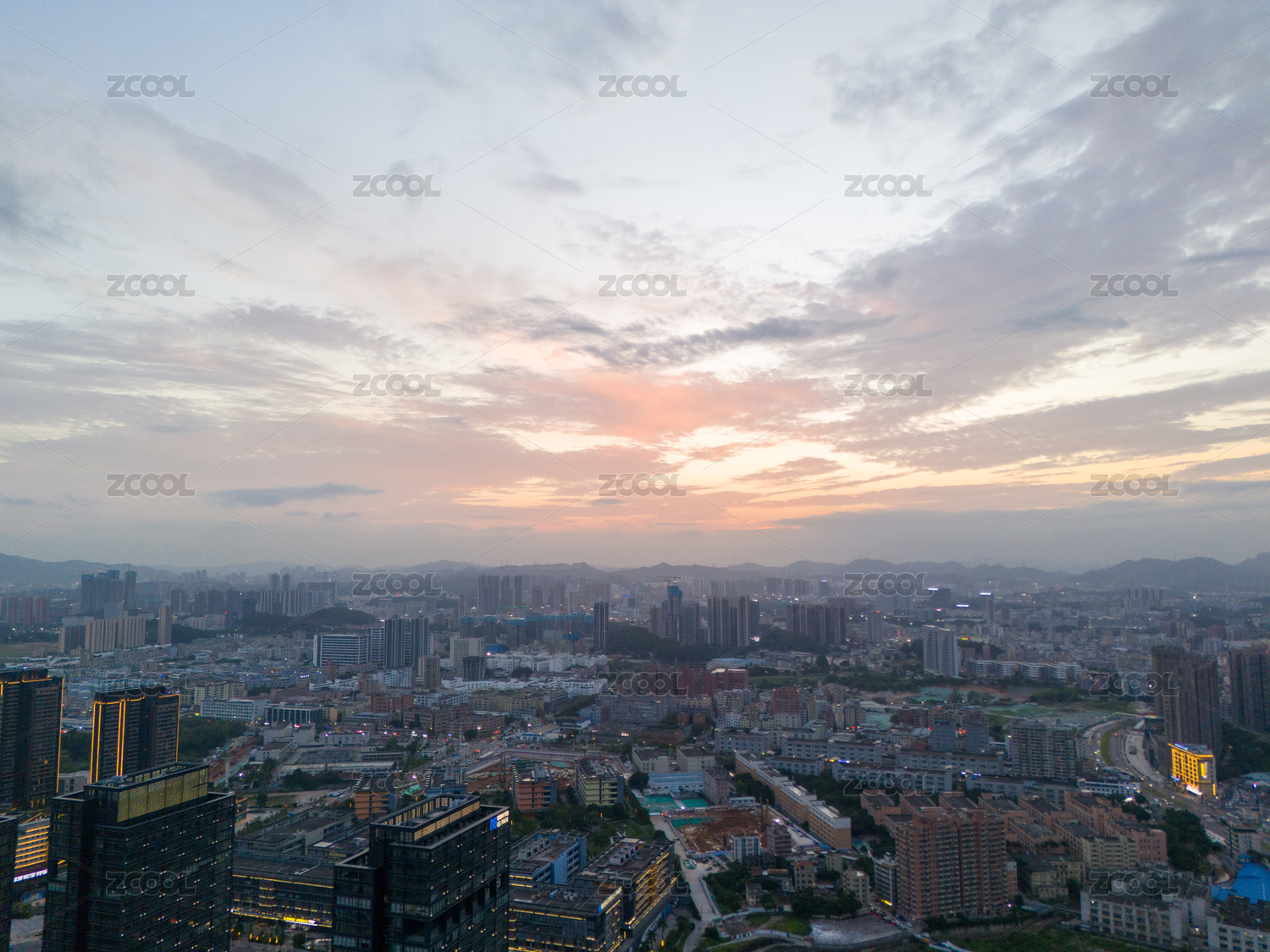 浙江义乌城市夜景晚霞风光鸟瞰航拍全景