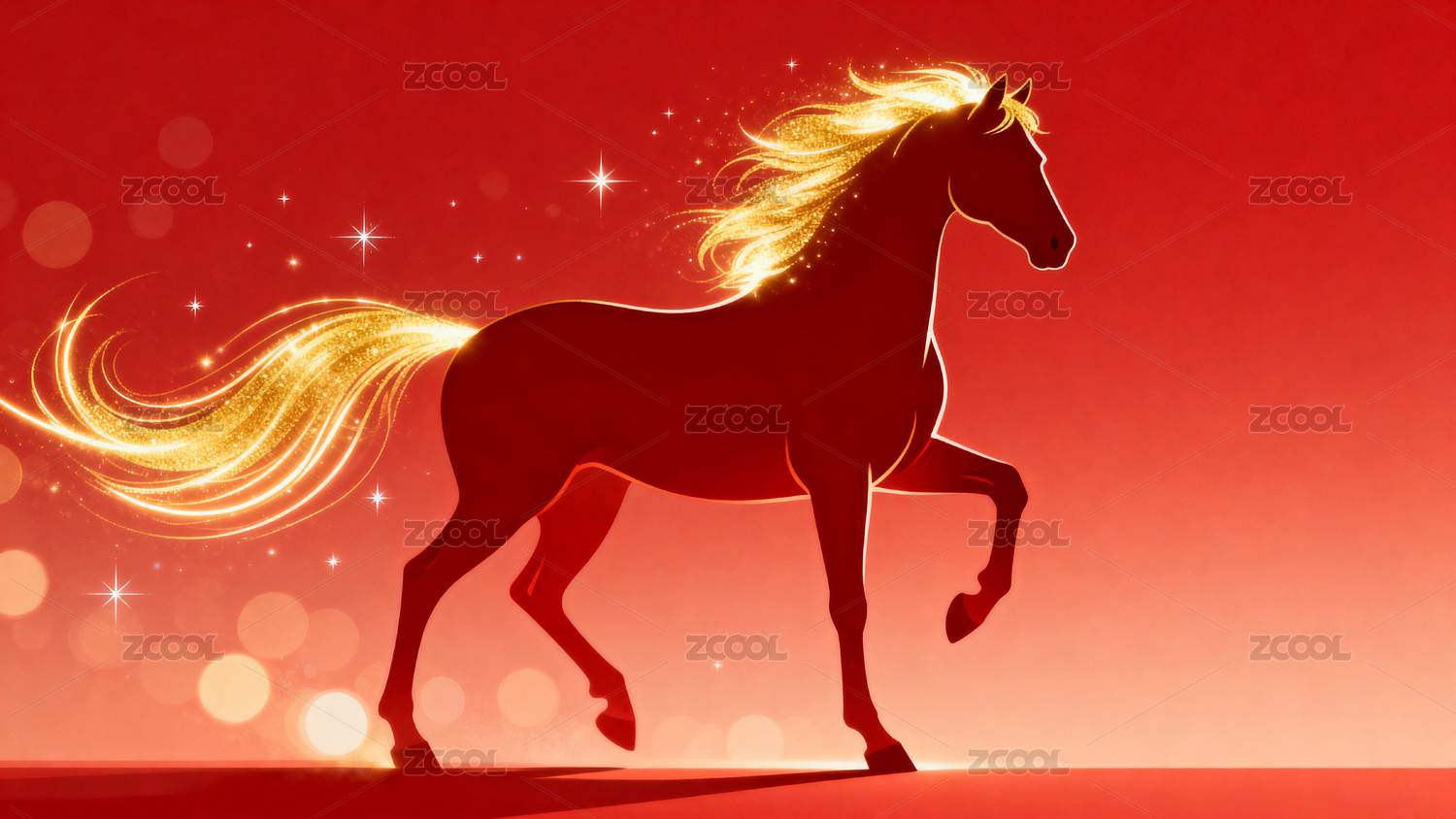 剪影,星空,奔跑,插画,红色背景,动态,艺术,插画素材,背景,艺术创作