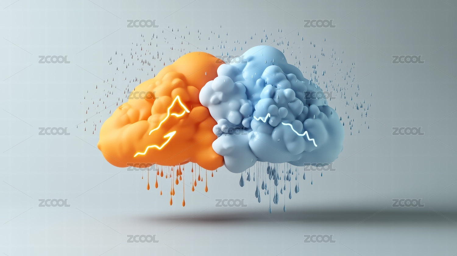 蓝色背景下云朵降雨