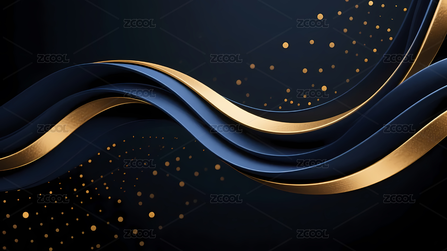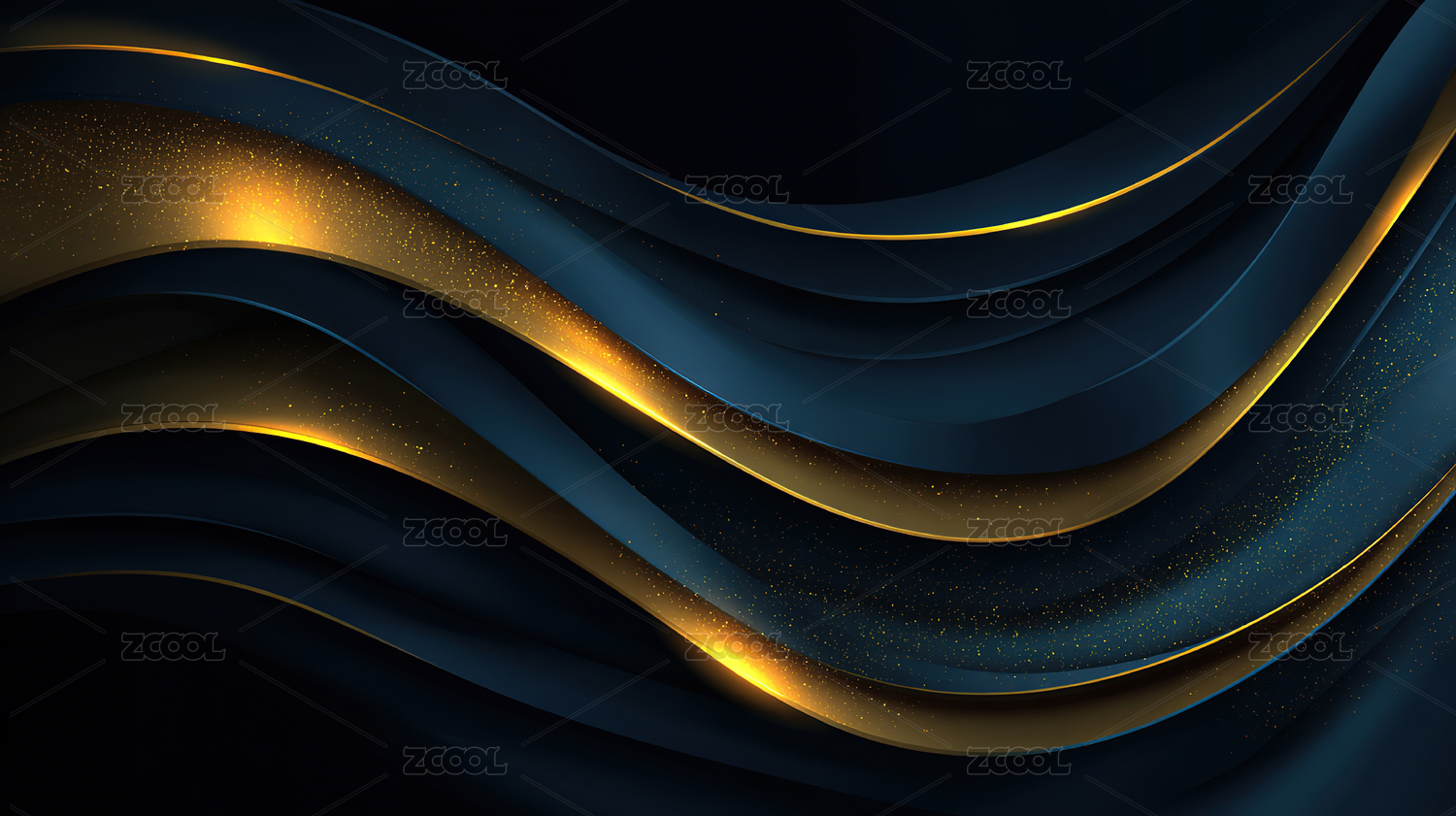 深蓝金波浪线条艺术