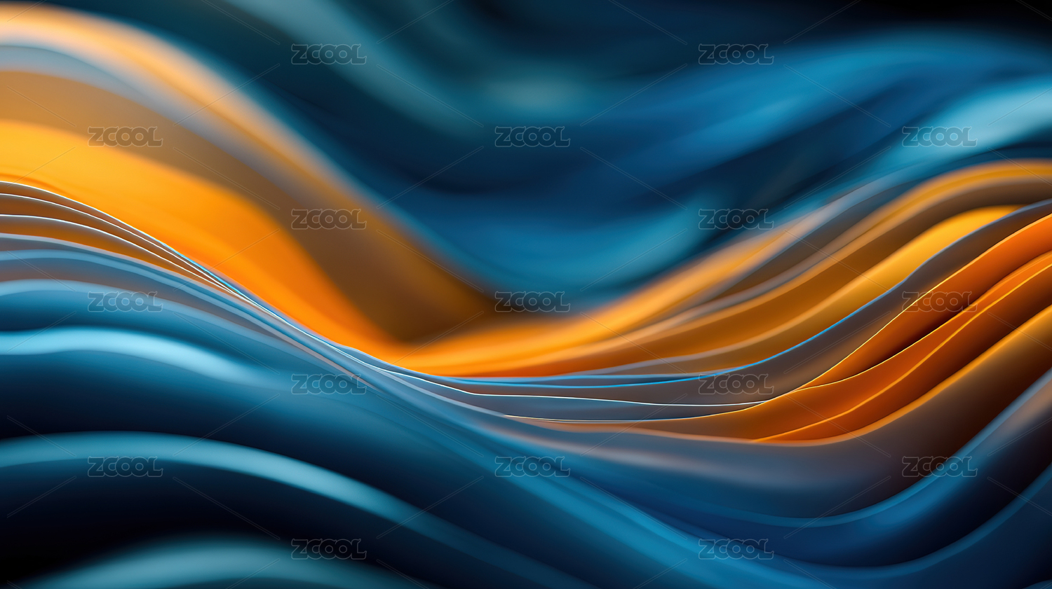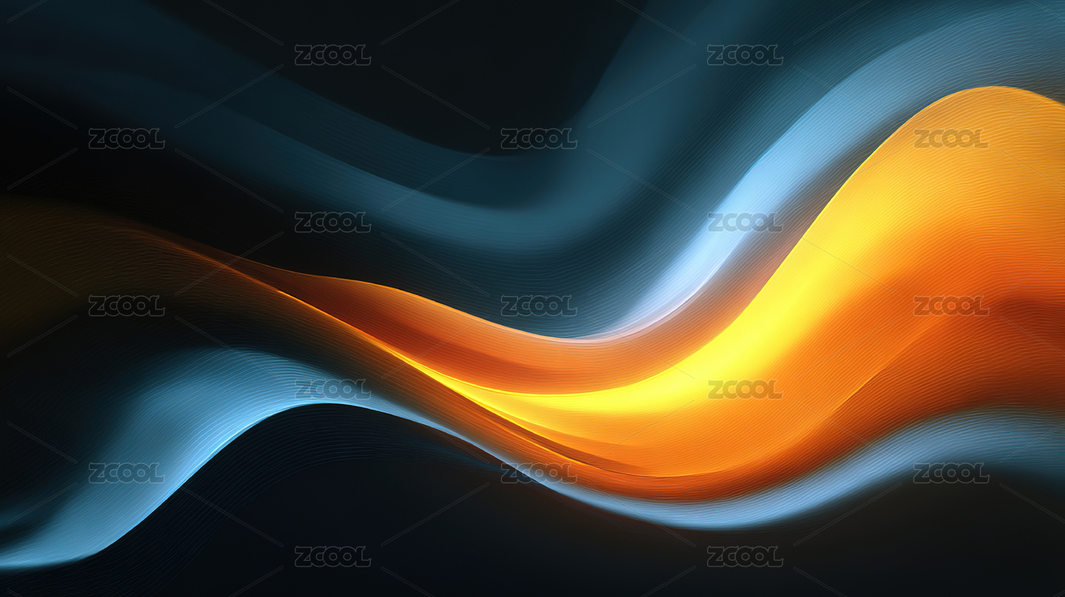 蓝橙色彩交织成流动线条呈现艺术动感视觉