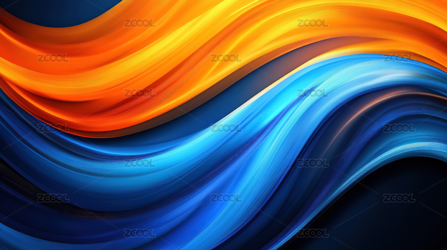 流动的蓝橙波浪抽象图案
