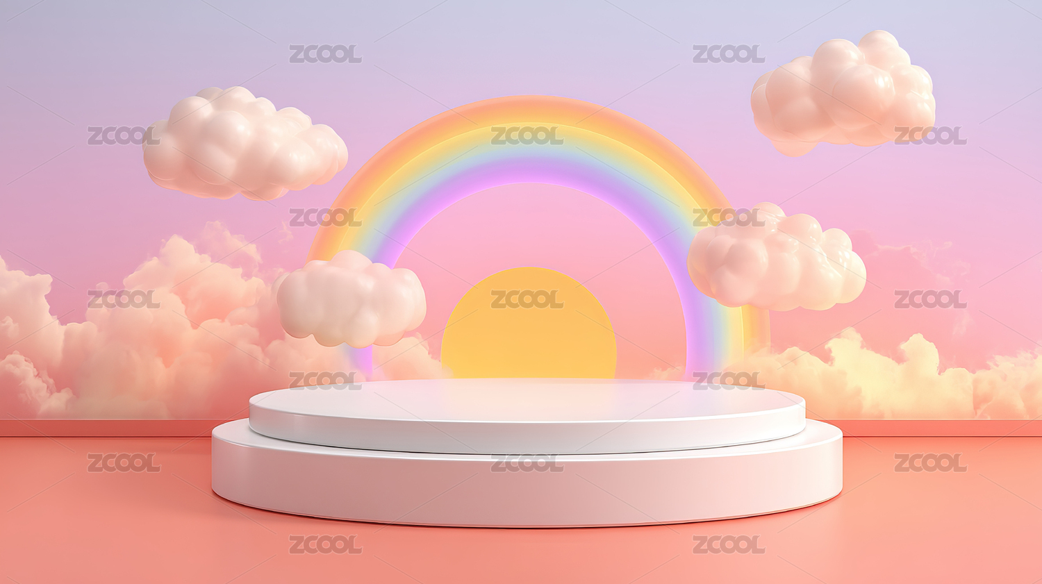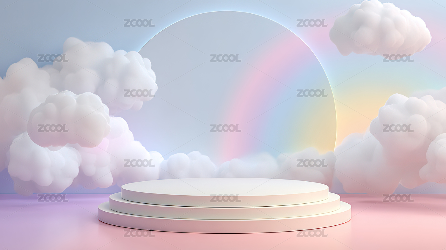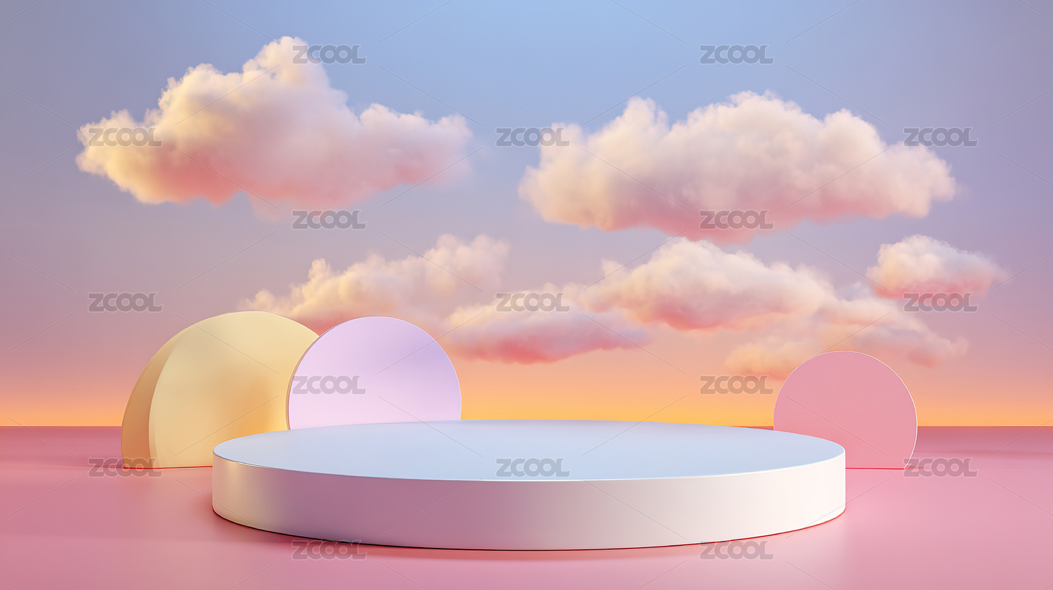粉色云朵中的白色圆台