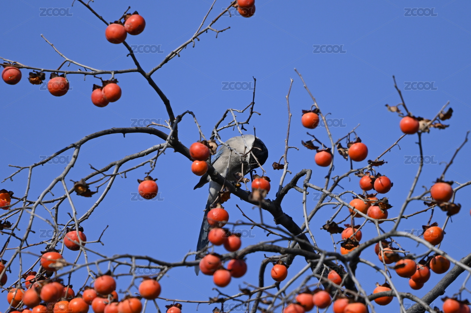 鸟,柿子,枝头,自然,秋天,天空,树枝,鸟类,果实,生态