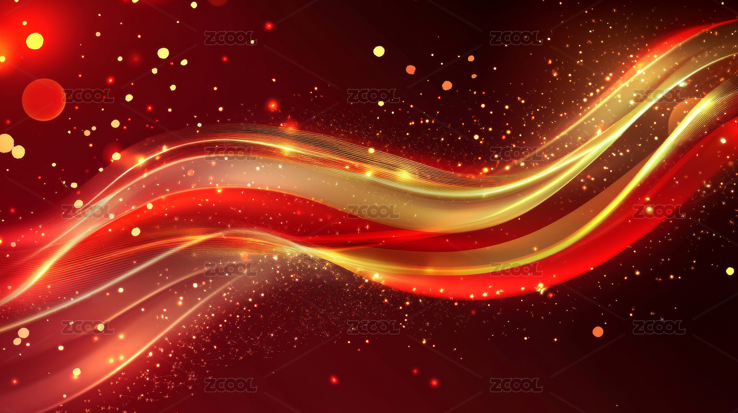 金色光带红色亮点背景