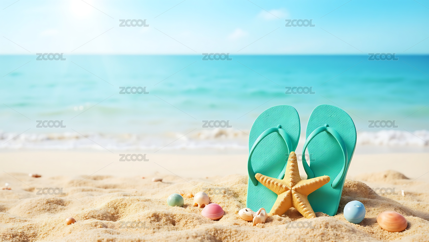 阳光,天空,蓝天,沙滩,海滩,海边,人字拖,海星,沙子,海洋