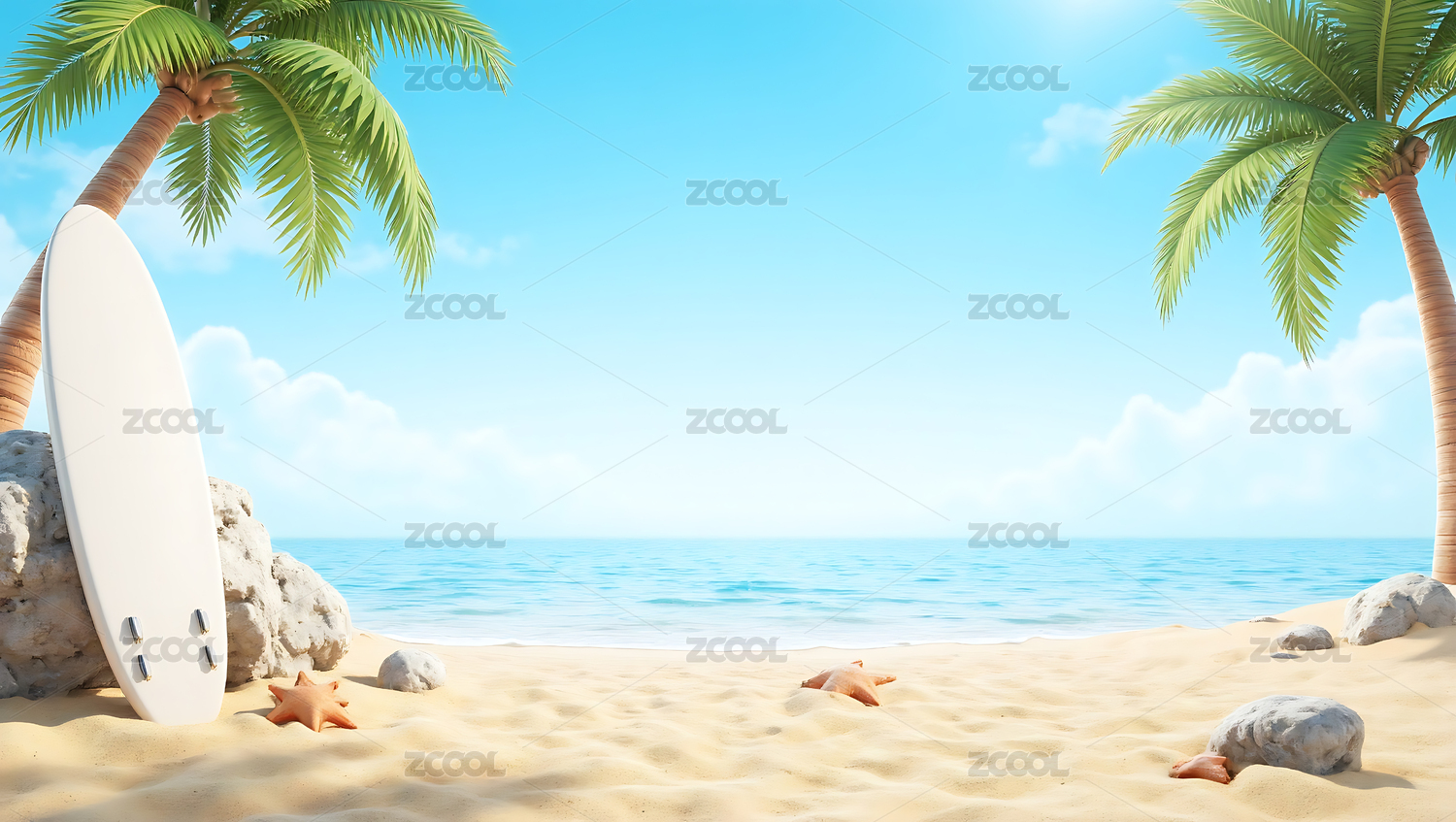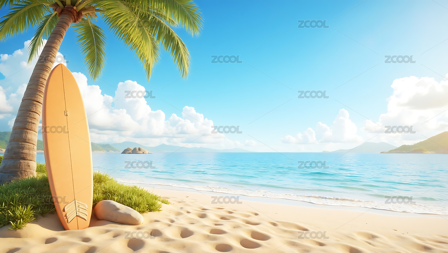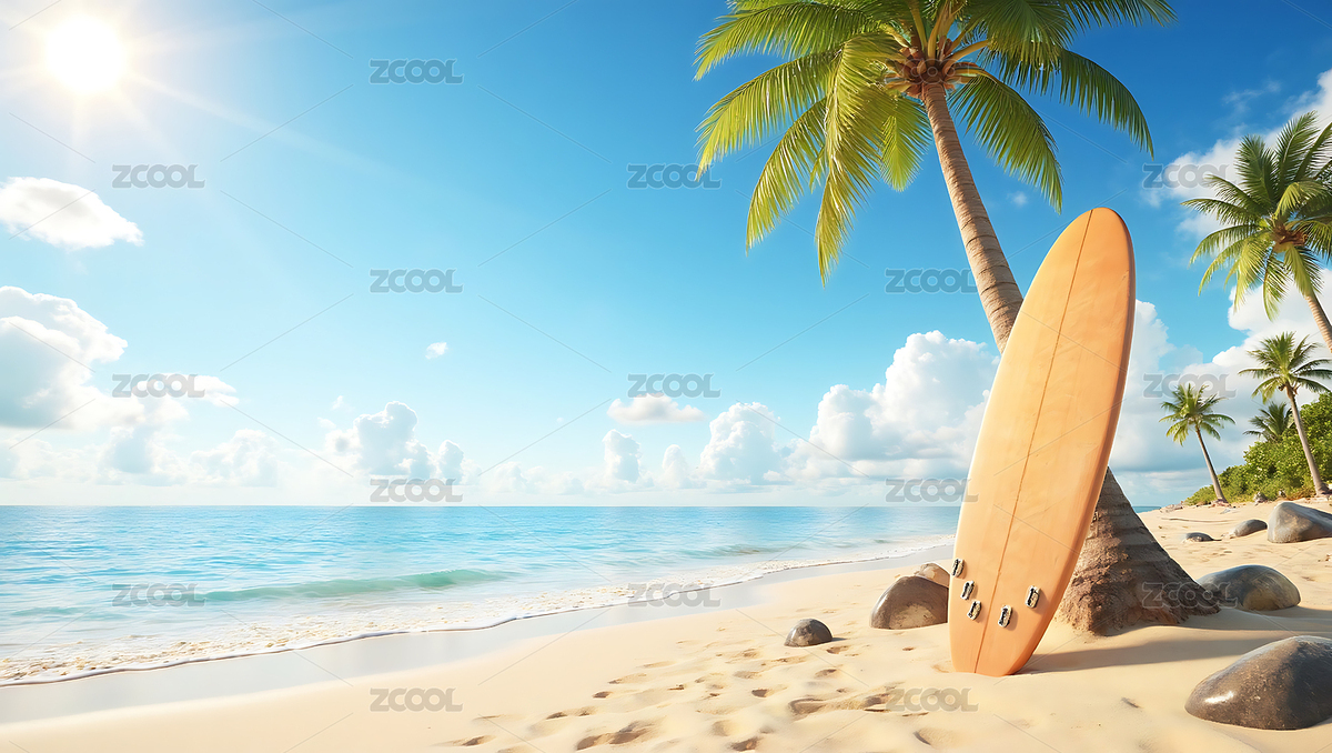 阳光沙滩椰树冲浪板