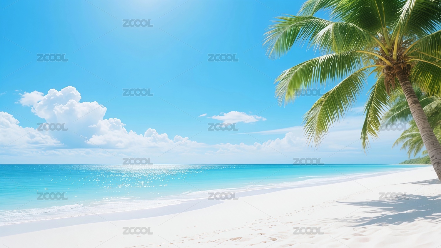 蓝天碧海沙滩与棕榈树