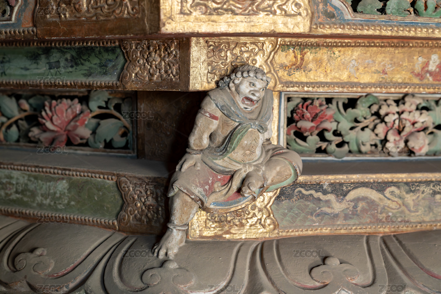 山西临汾隰县小西天内的明清贴金悬塑及彩绘