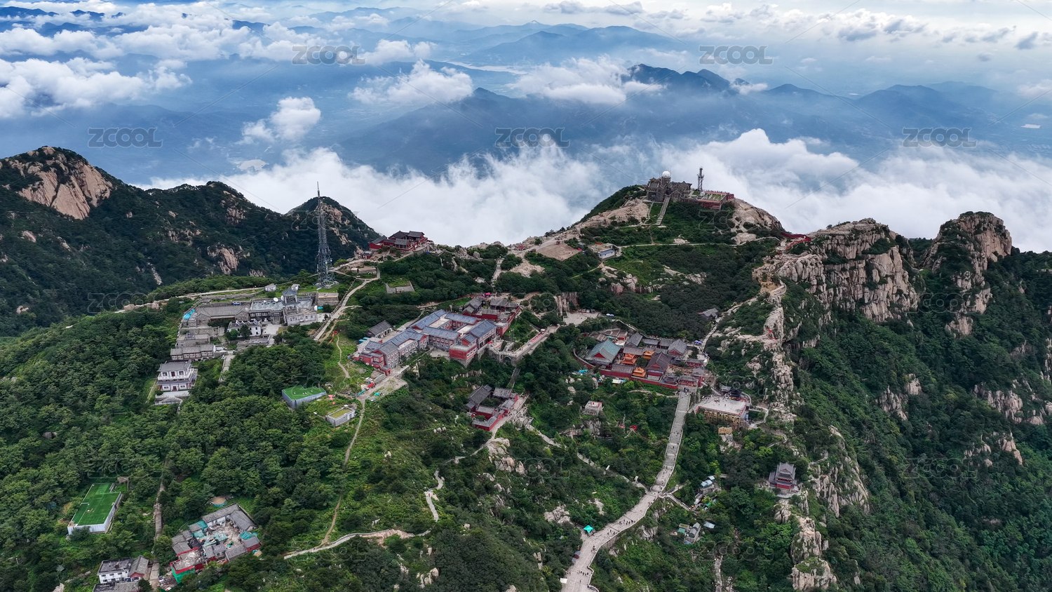 泰山,全景,航拍,高空,俯瞰,山峦,建筑,天空,云朵,植被
