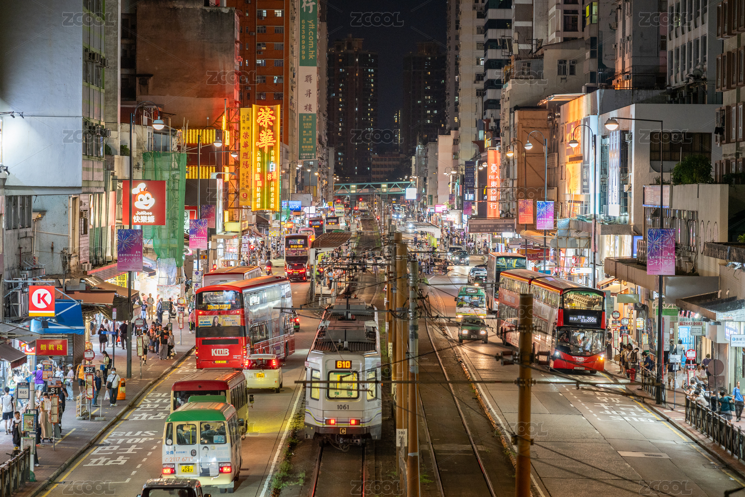 中国香港港岛英皇道新光戏院街头的有轨电车