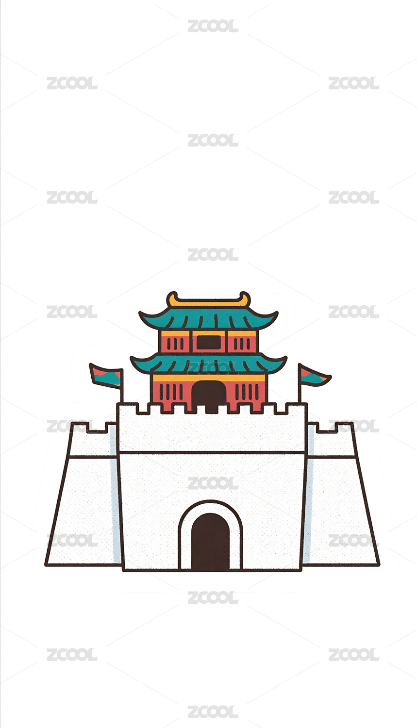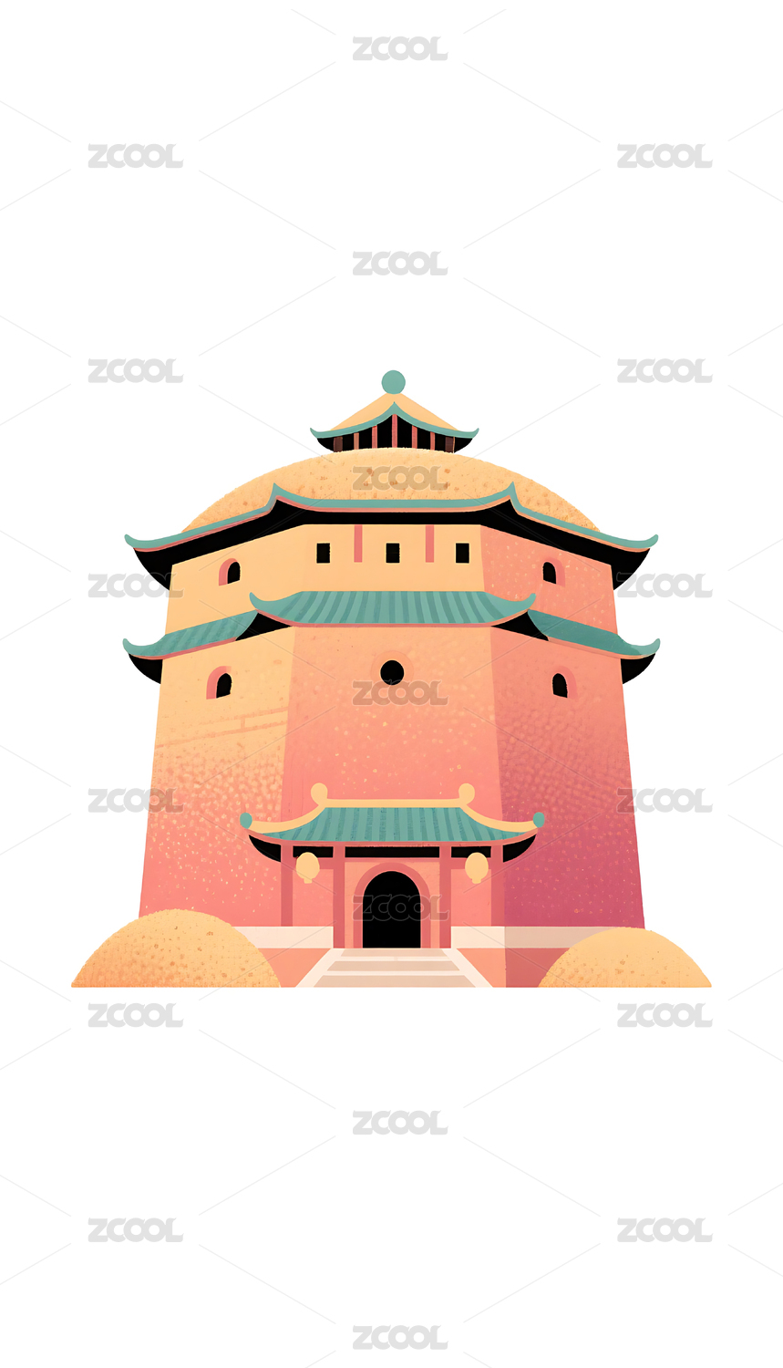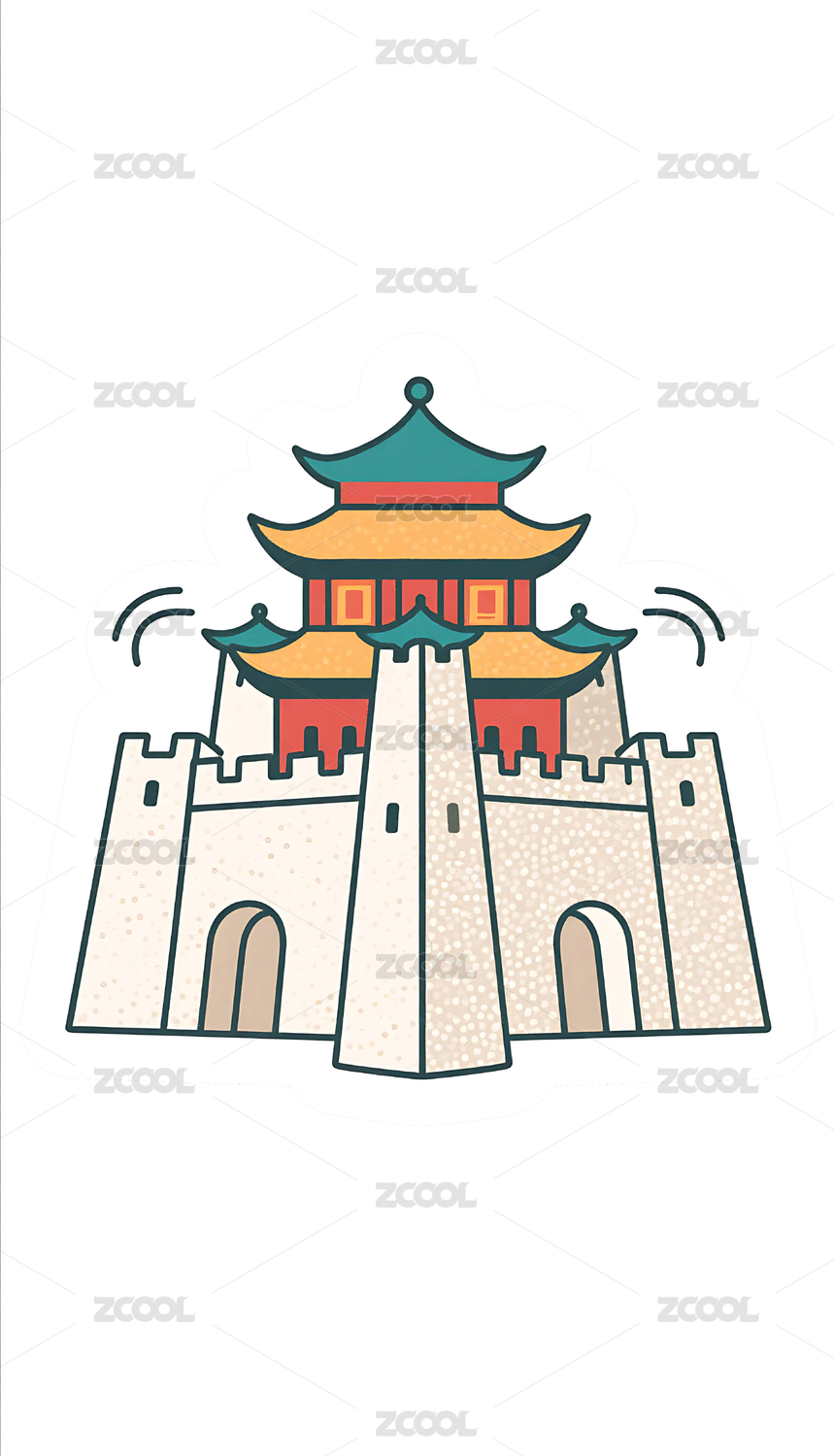 国潮卡通风格古建筑城楼插画素材