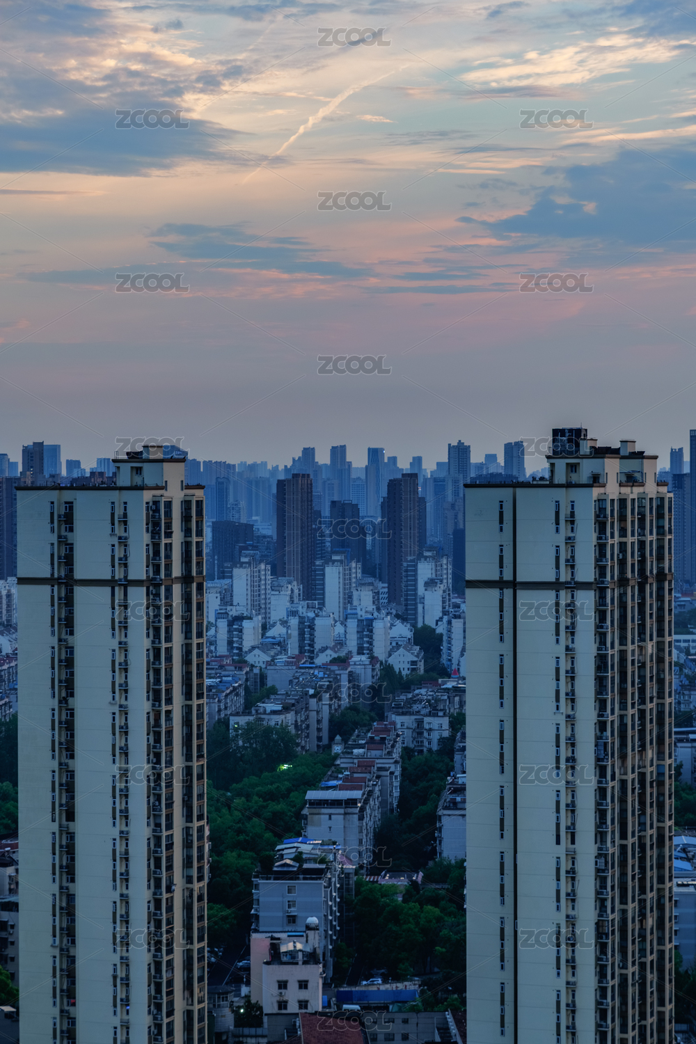 武汉城市天际线高楼大厦日落黄昏天空晚霞