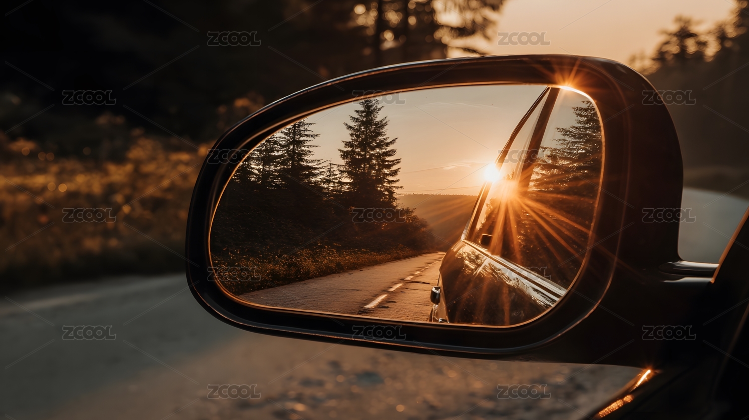 天空,云层,田野,自然风光,树木,远方,晴朗天气,后视镜,乡村道路,汽车