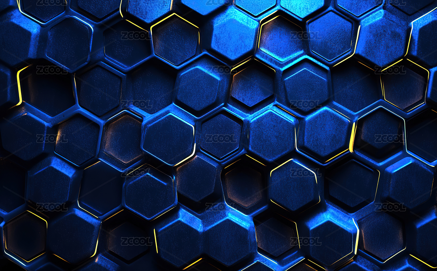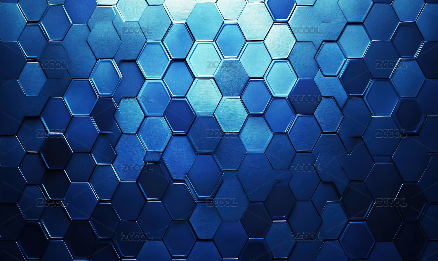 数码蓝色立体蜂窝结构六角图形海报网页背景