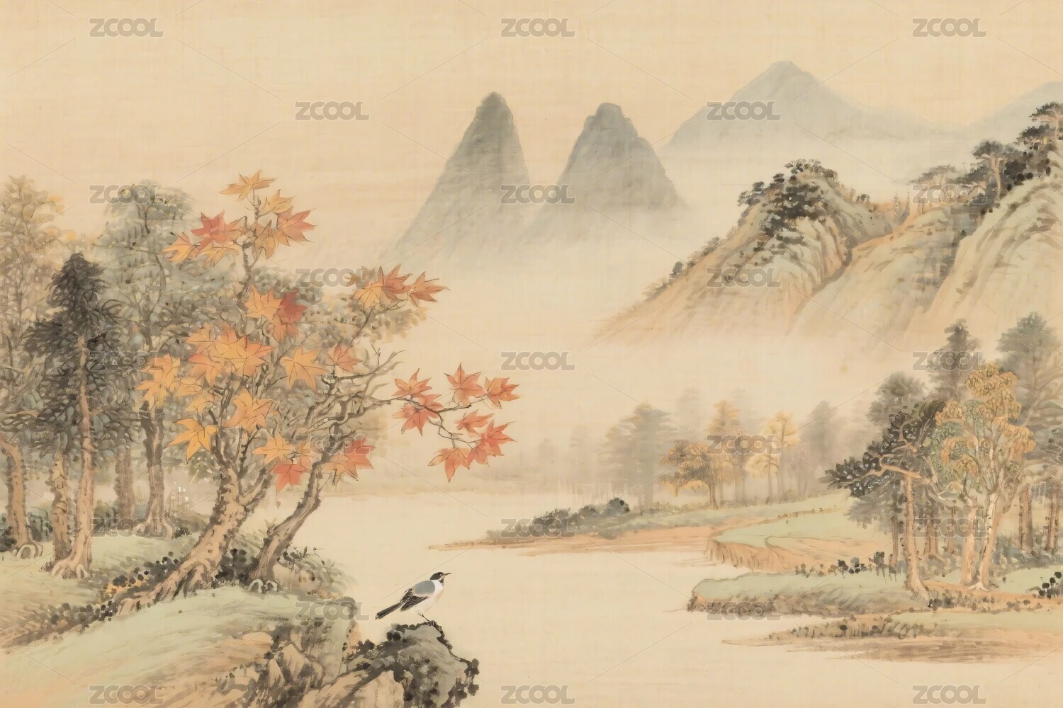 意境,山水,水墨,树木,中国风,写意,河流,风景,山峰,云雾