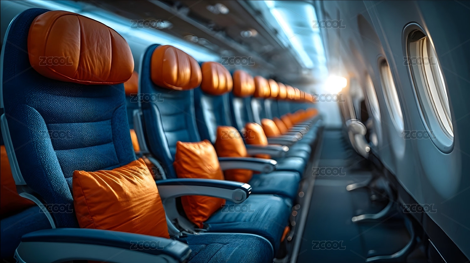 飞机,客舱,座椅,过道,照明,机舱,乘客,行李架,窗户,座位
