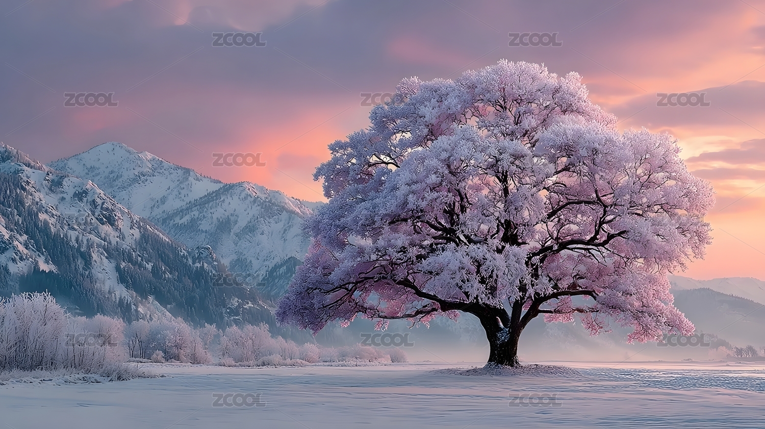 雪景,古树,凉亭,蓝天,白雪,冬季,自然,风景,宁静,美丽