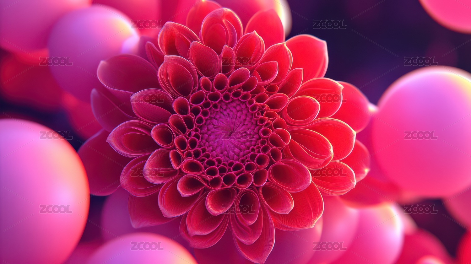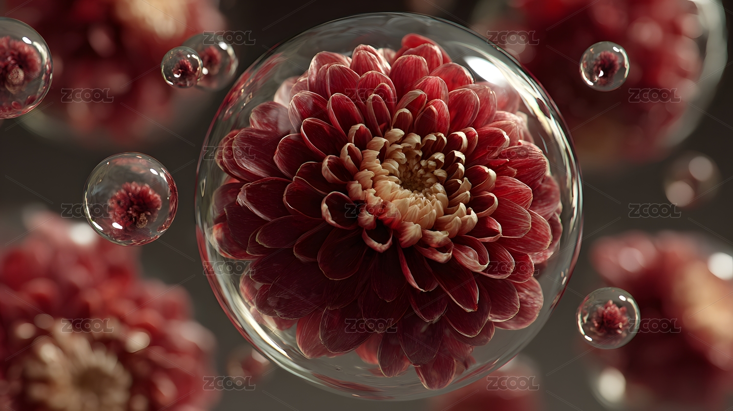 红色大丽花气泡梦幻场景
