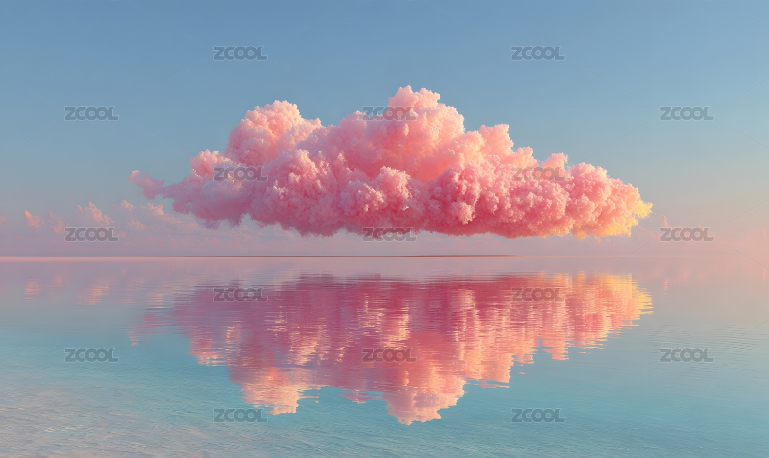 粉色,倒影,柔和,梦幻,天空,云朵,美丽,平静,蓝天,海水