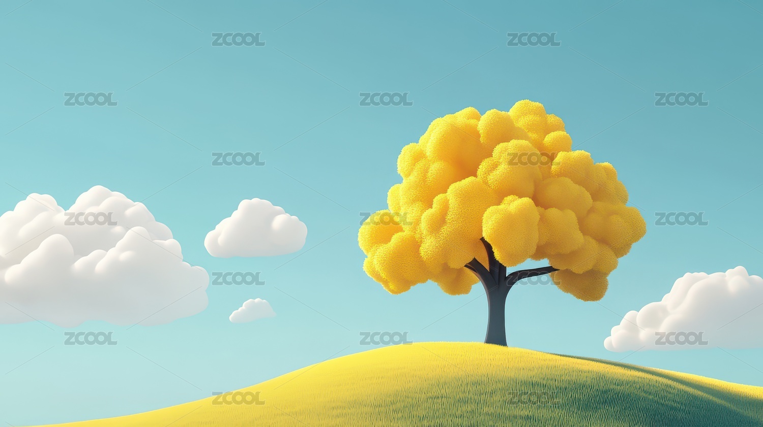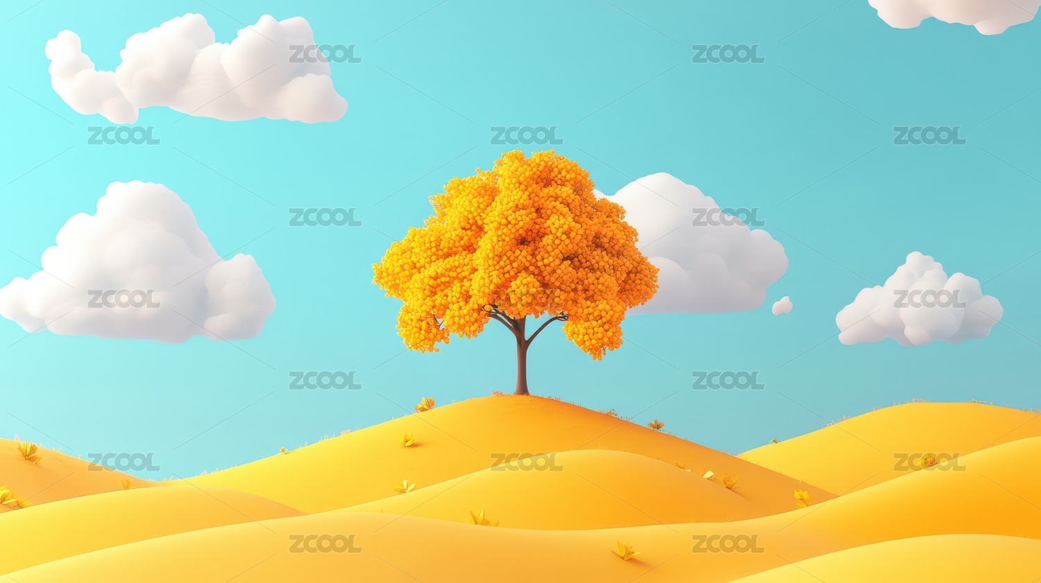 草地,蓝天,白云,落叶,金树,秋风,静谧,季节