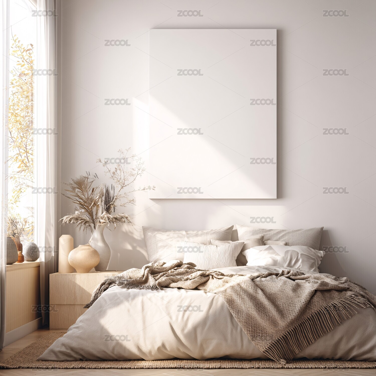 简约卧室空白画框场景