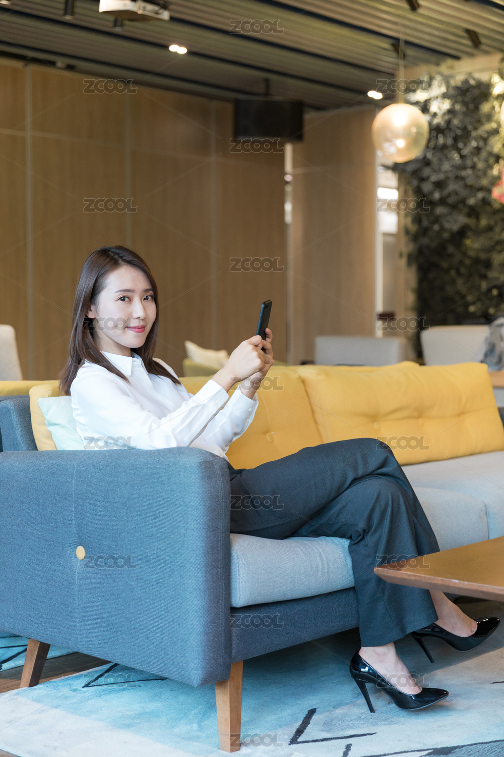 职场白领坐在沙发上专注工作