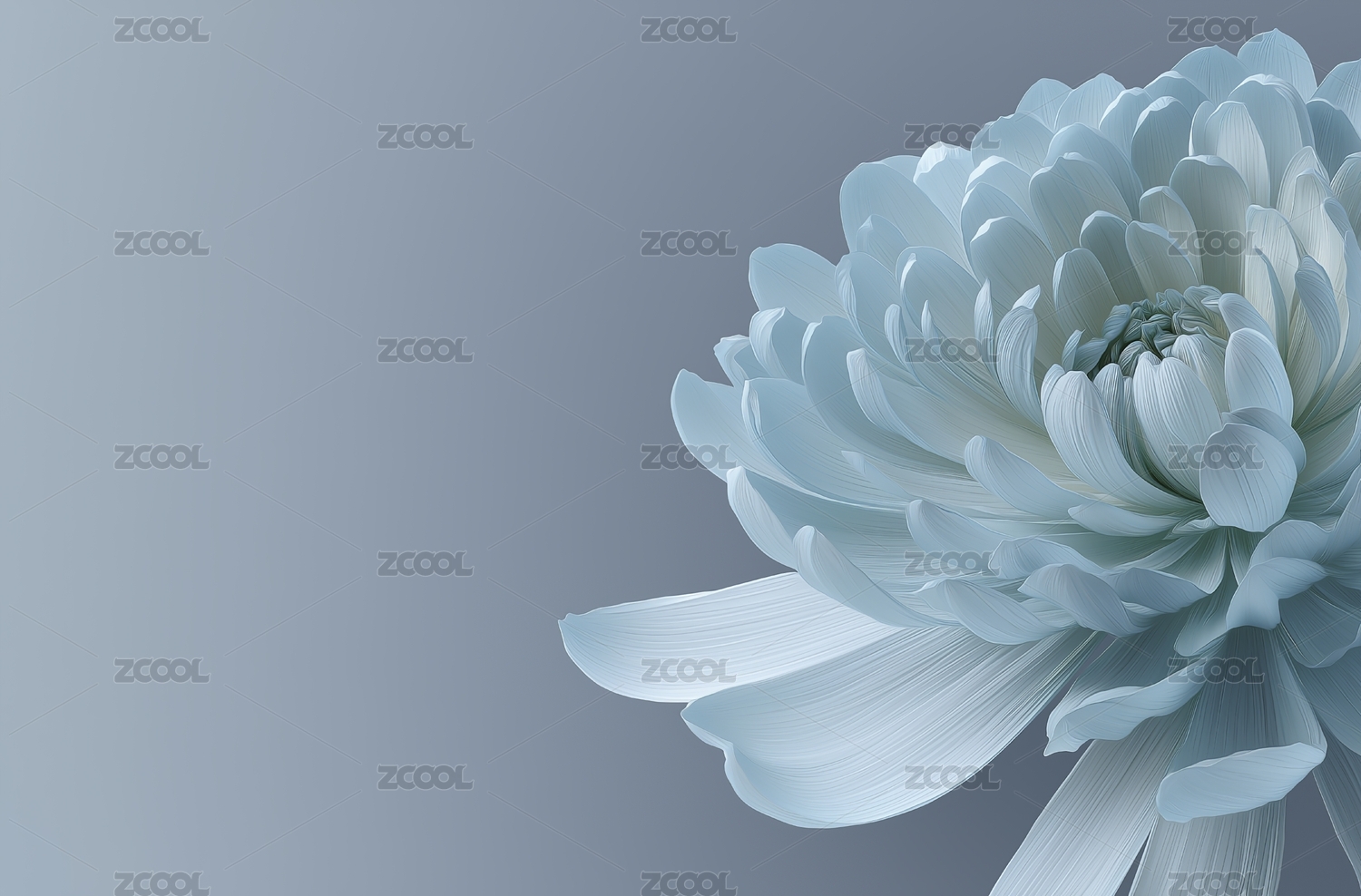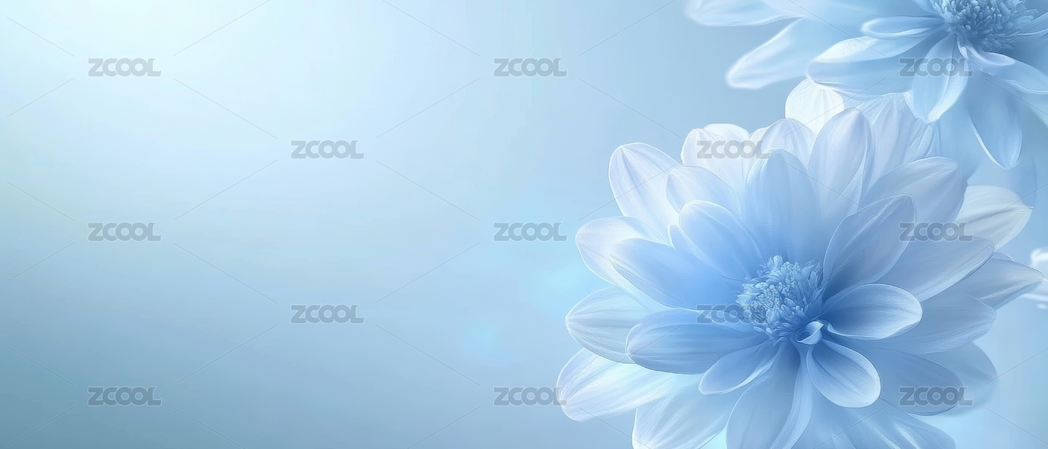 蓝色背景上蓝色花朵特写呈现简约清新艺术美