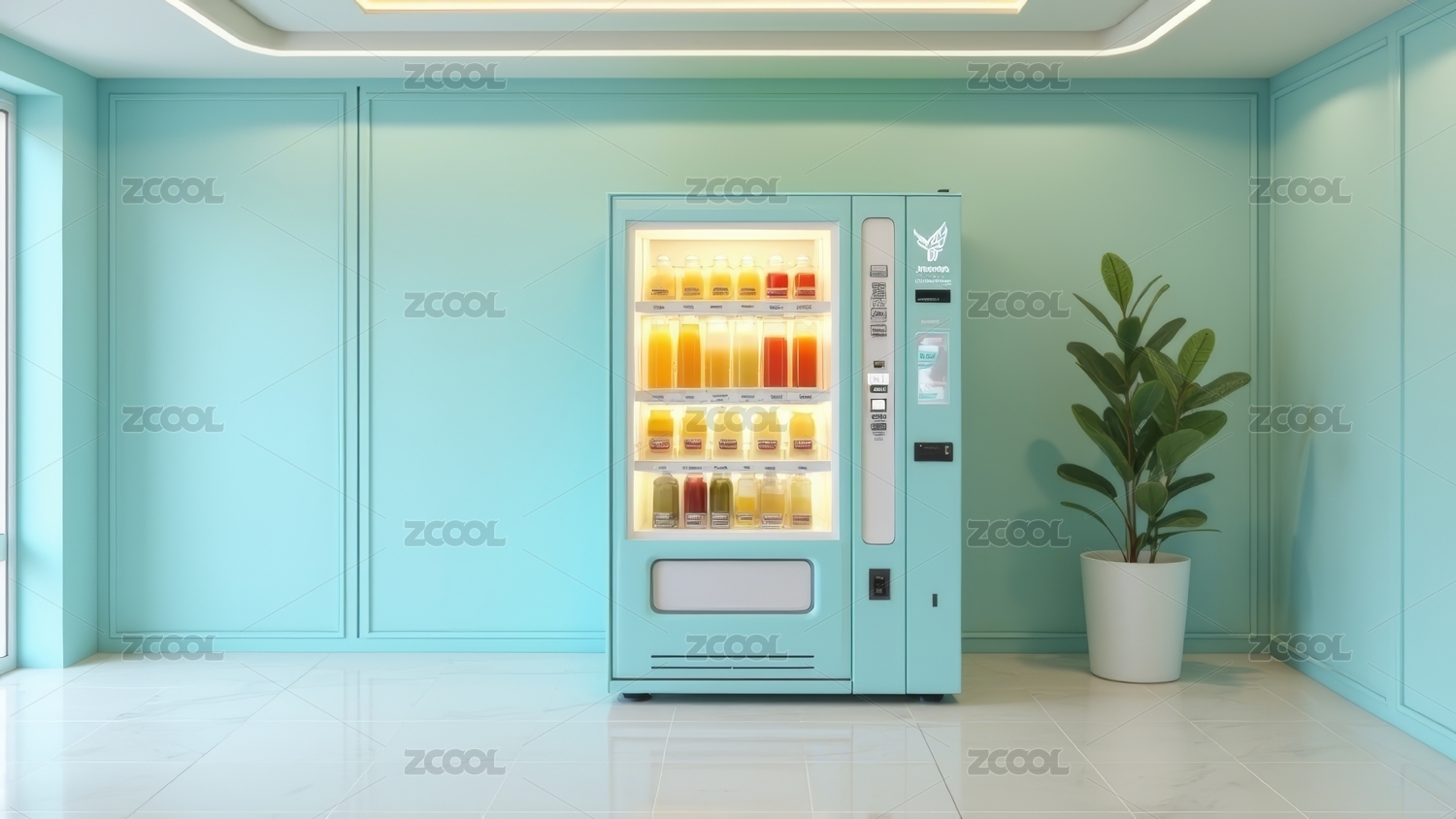 浅蓝背景售货机展示