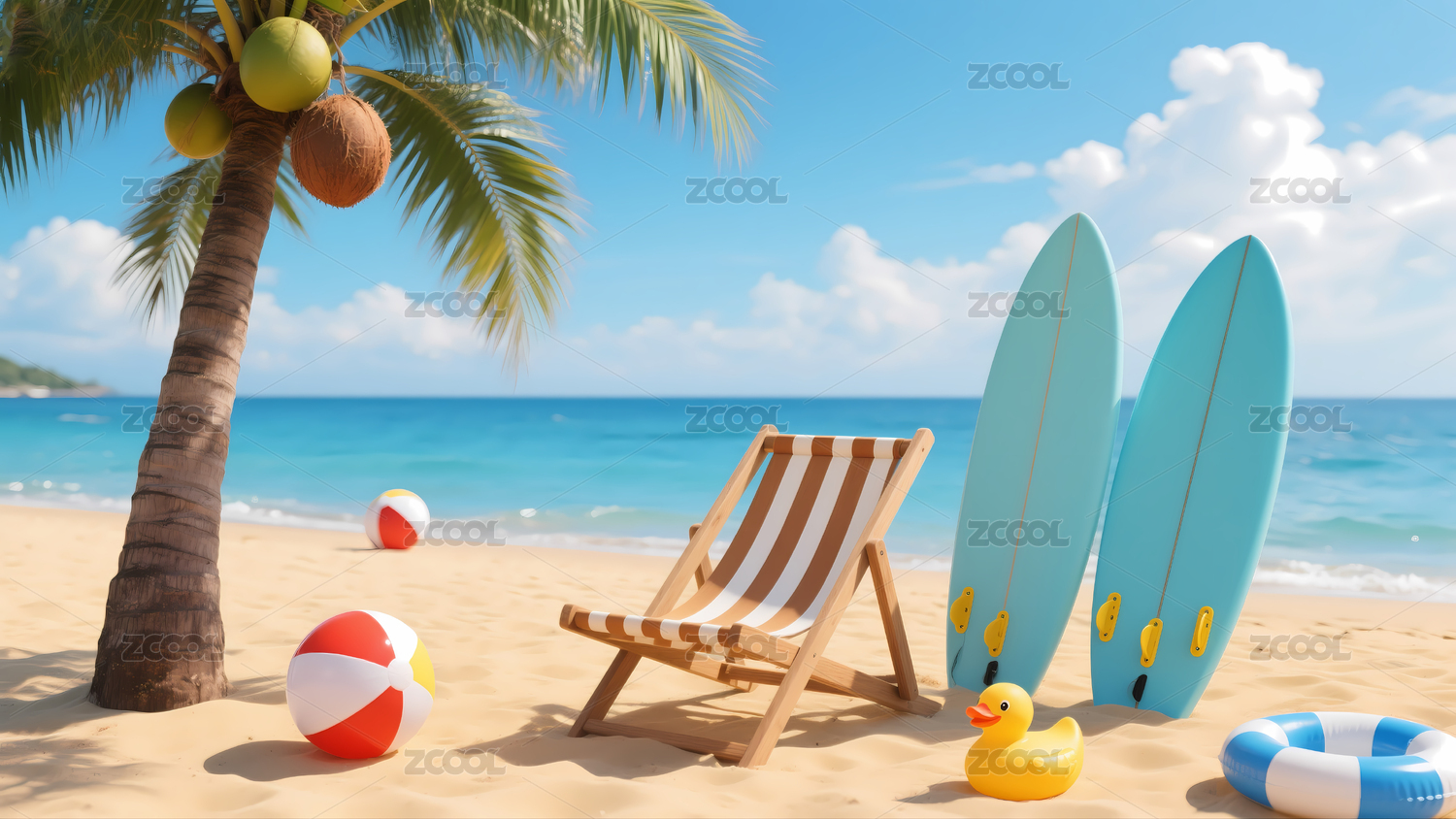 沙滩,蓝色,橙色,蓝天,白云,度假,旅行,夏季,自然,风景