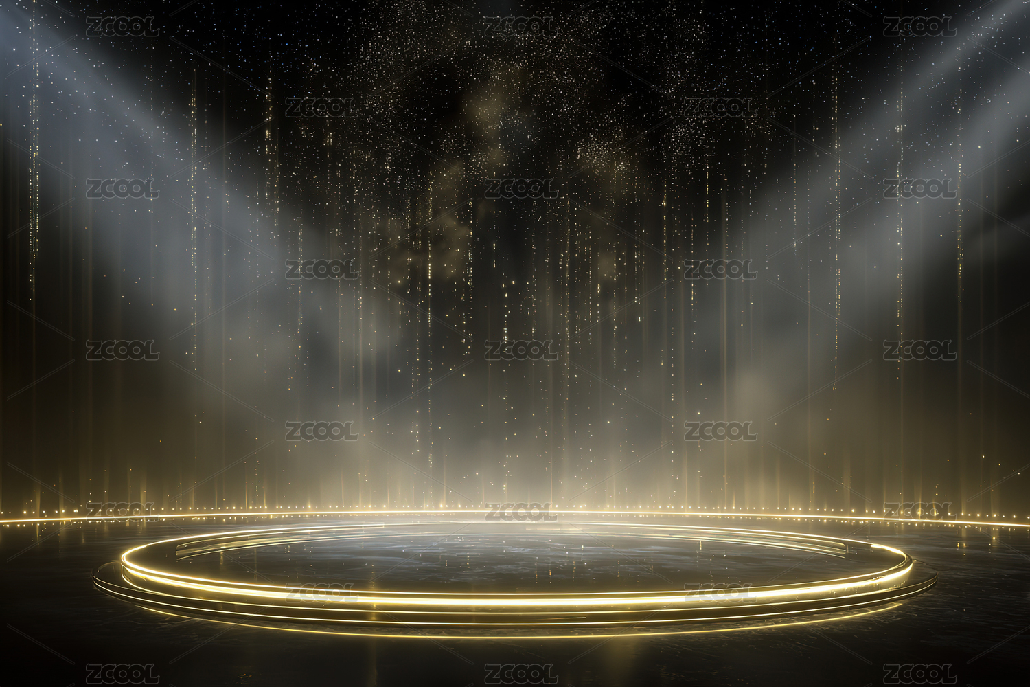 金色光束与粒子环绕的舞台