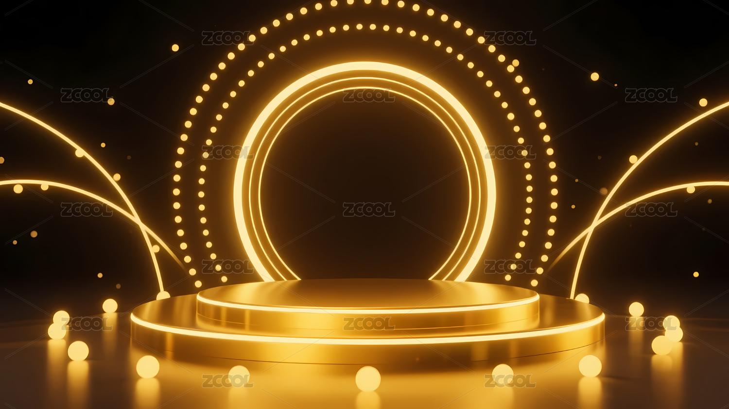 深色,未来,背景,发光,金色,视觉,圆形,舞台,圆环,现代