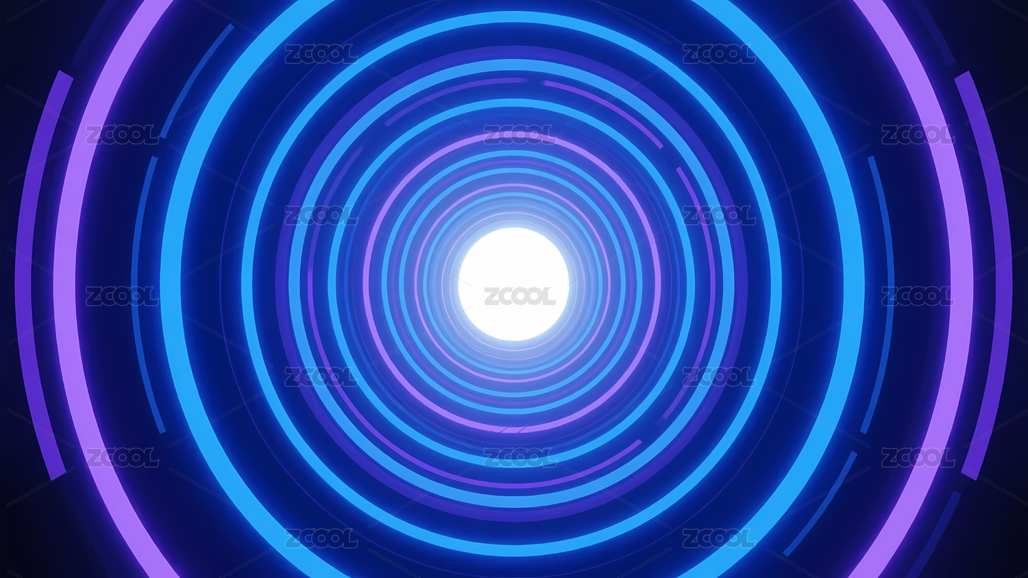 红蓝色霓虹灯环绕构成的发光通道隧道
