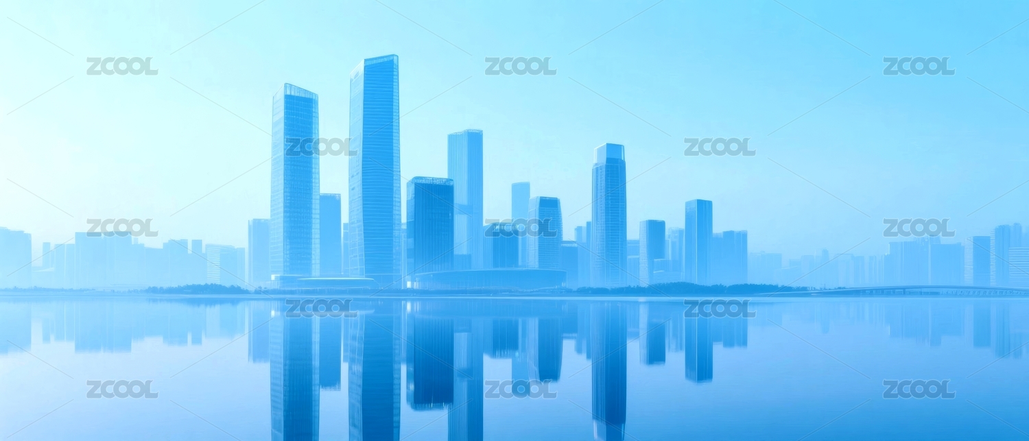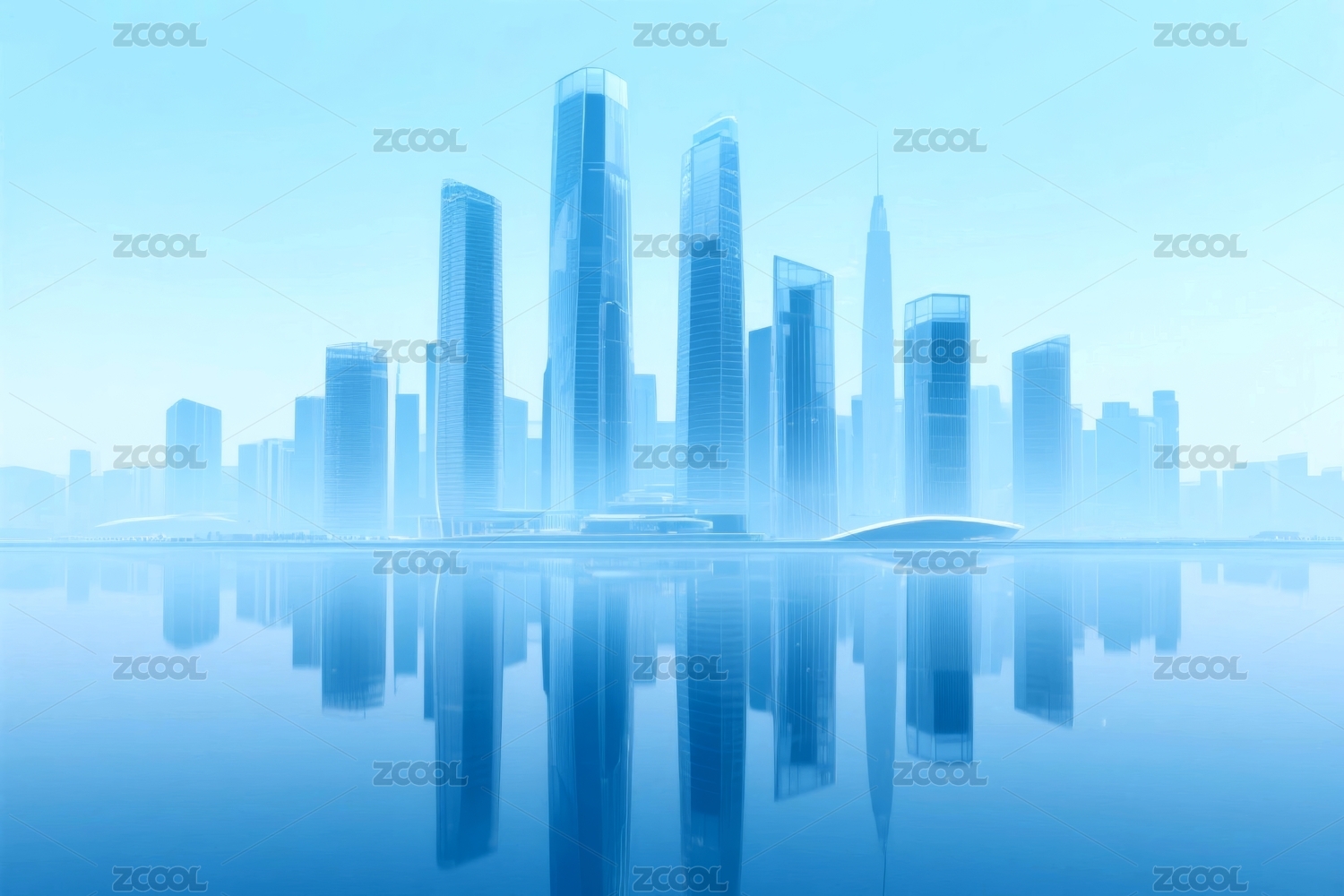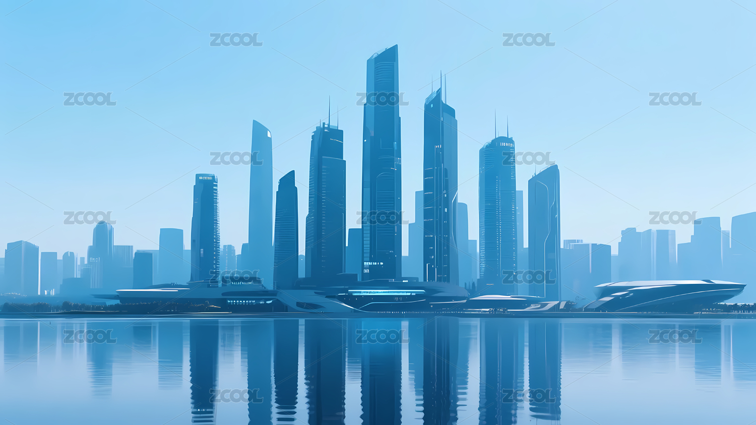 背景,蓝色,天空,城市,水面,倒影,神秘,高楼,大厦,宁静