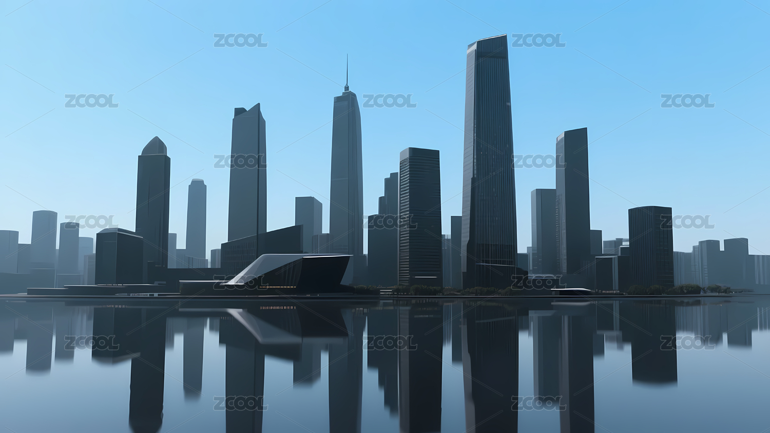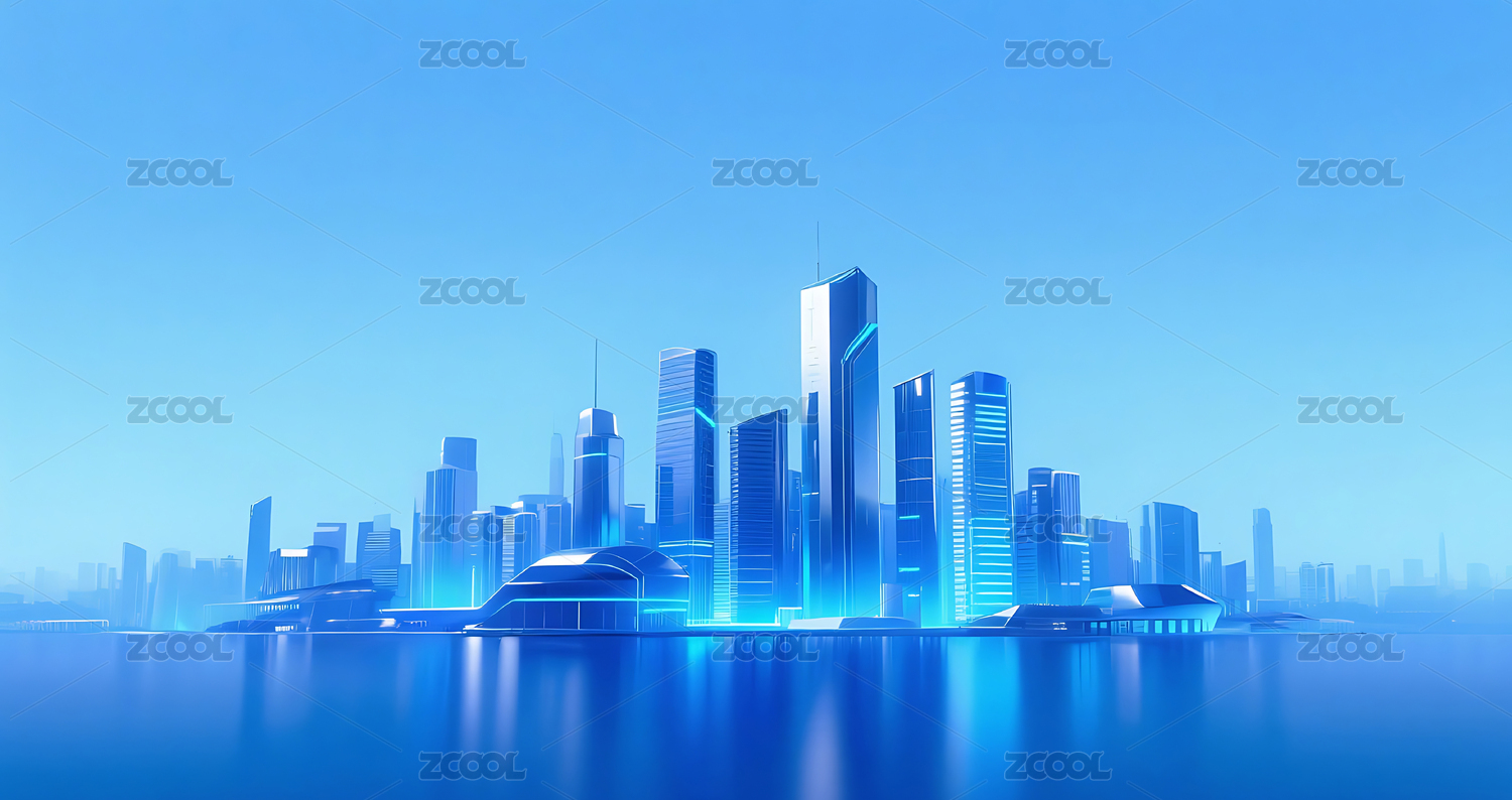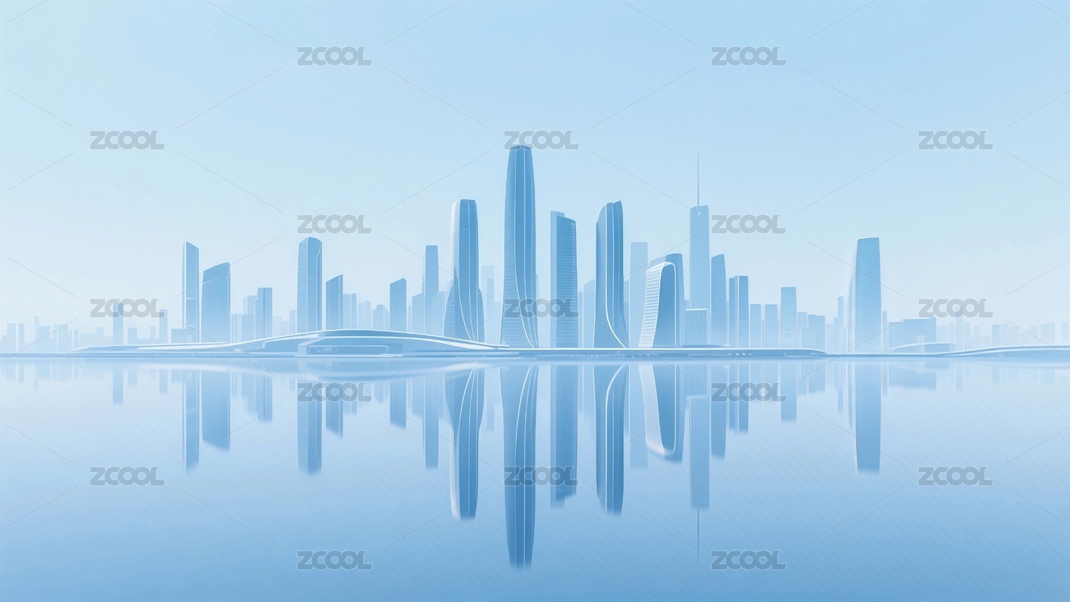 背景,蓝色,天空,城市,水面,倒影,神秘,高楼,大厦,宁静