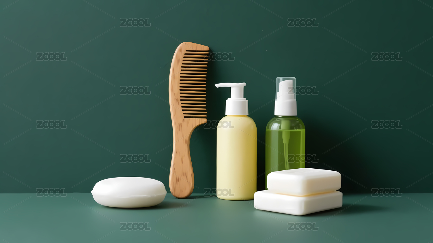 收纳盒,瓶子,梳子,黄色,绿色,墙面,植物,背景,清新,自然