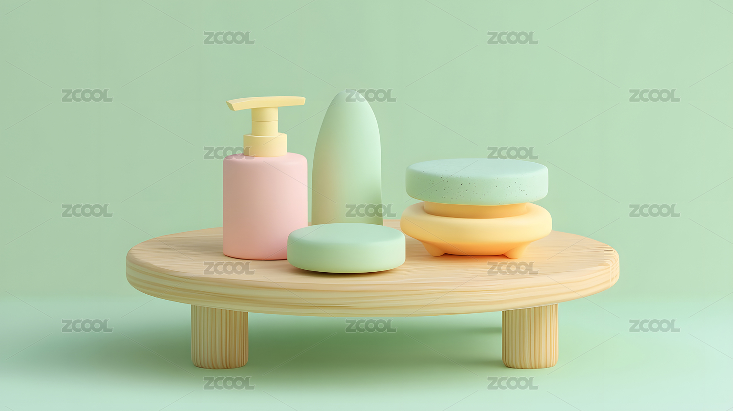 3D渲染洗面奶化妆品模板展示平台三维背景