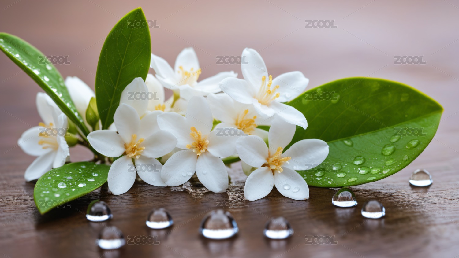 带水珠的茉莉花