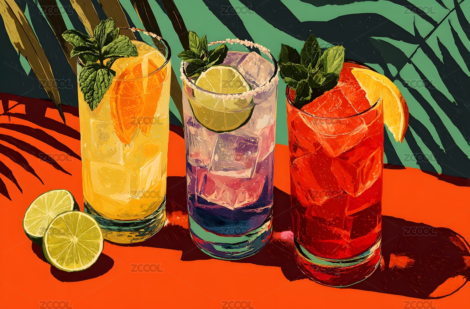 彩色鸡尾酒饮品特写 夏日清爽饮品
