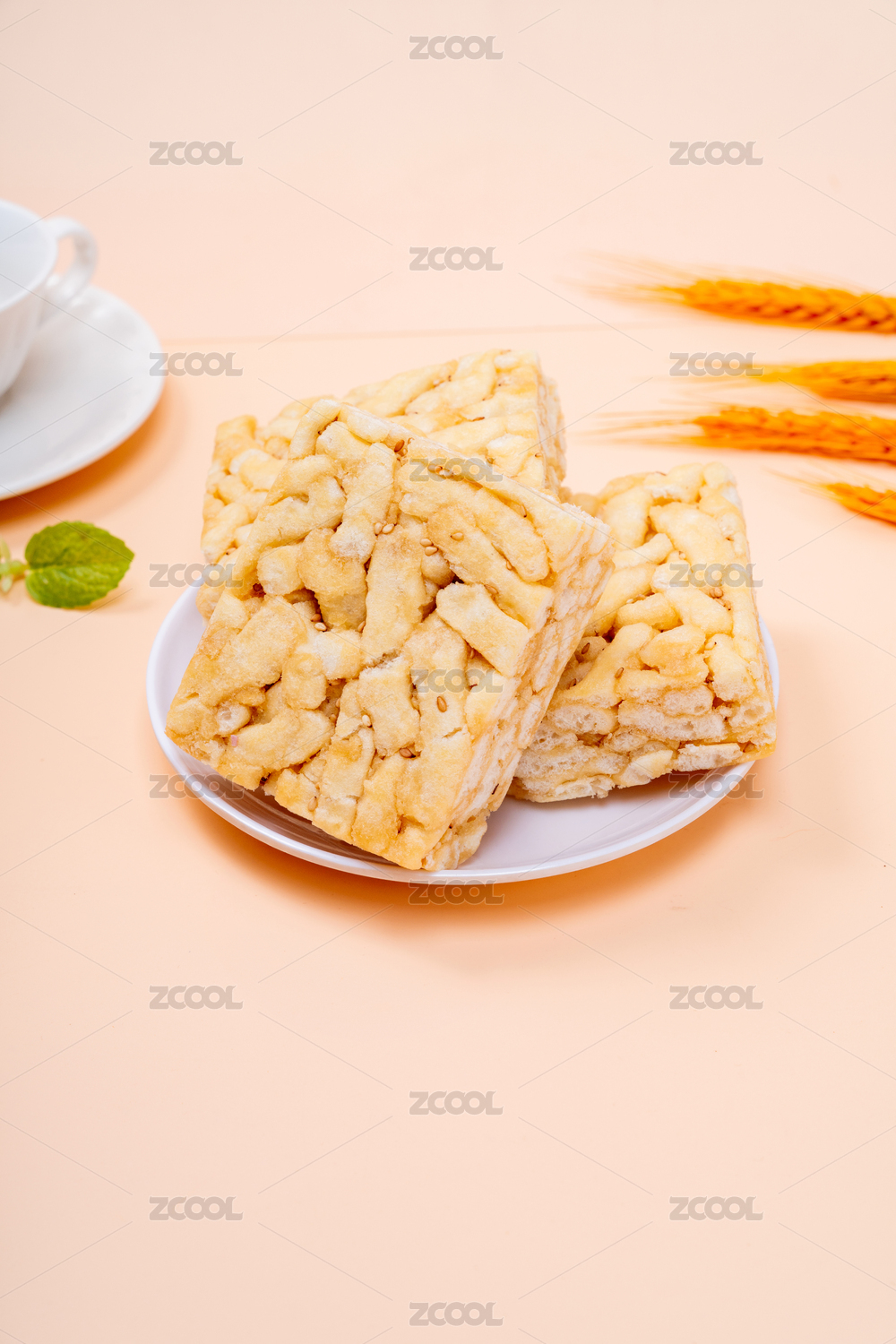 白色盘子,沙琪玛,食材,零食,质感,静态展示,美食,传统风味,松软,香甜