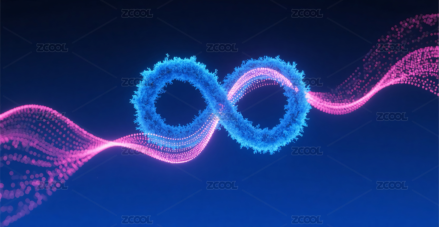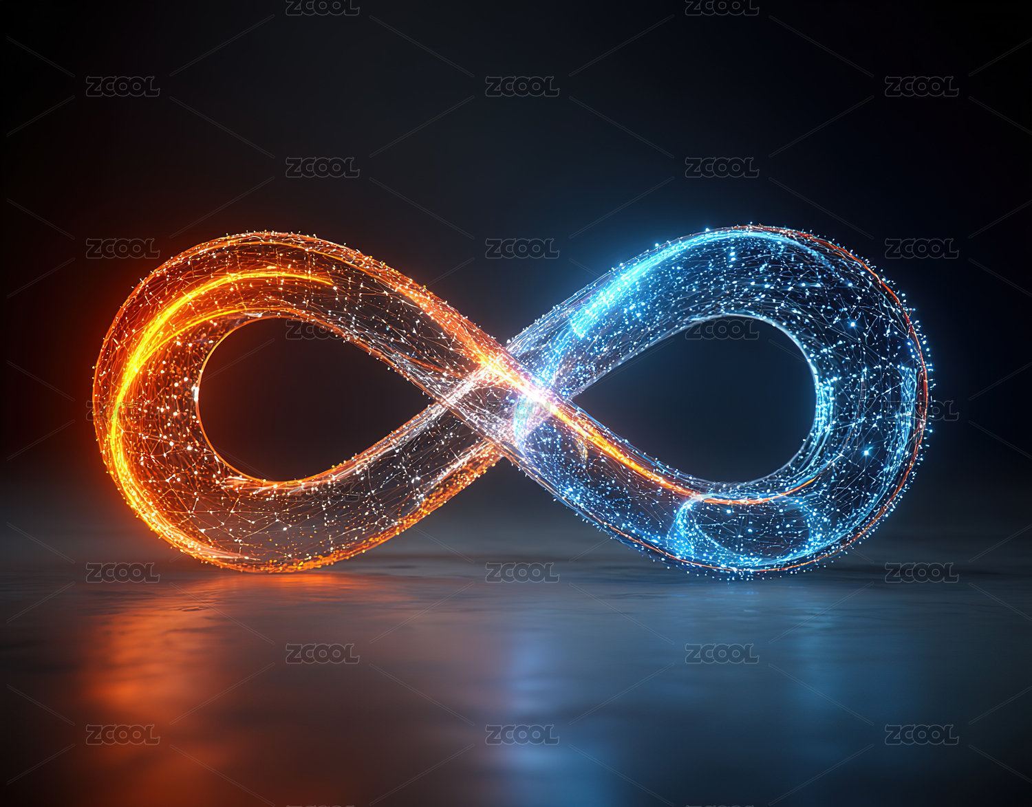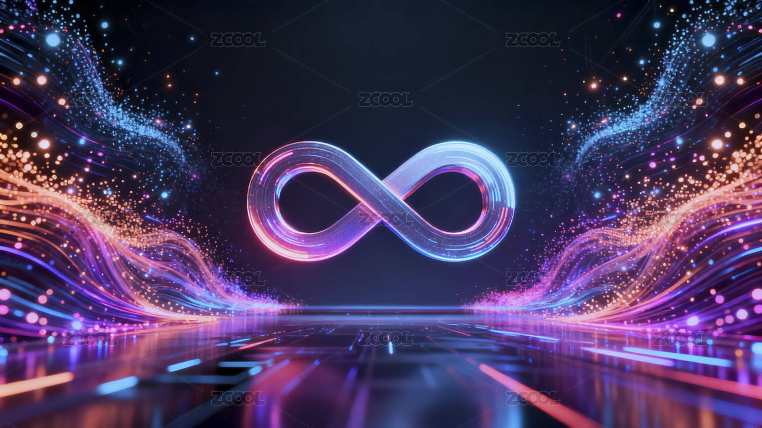 无限符号,未来科技,数字化,几何图形,科技元素,高对比度,深色背景,蓝色线条,无限可能,科技