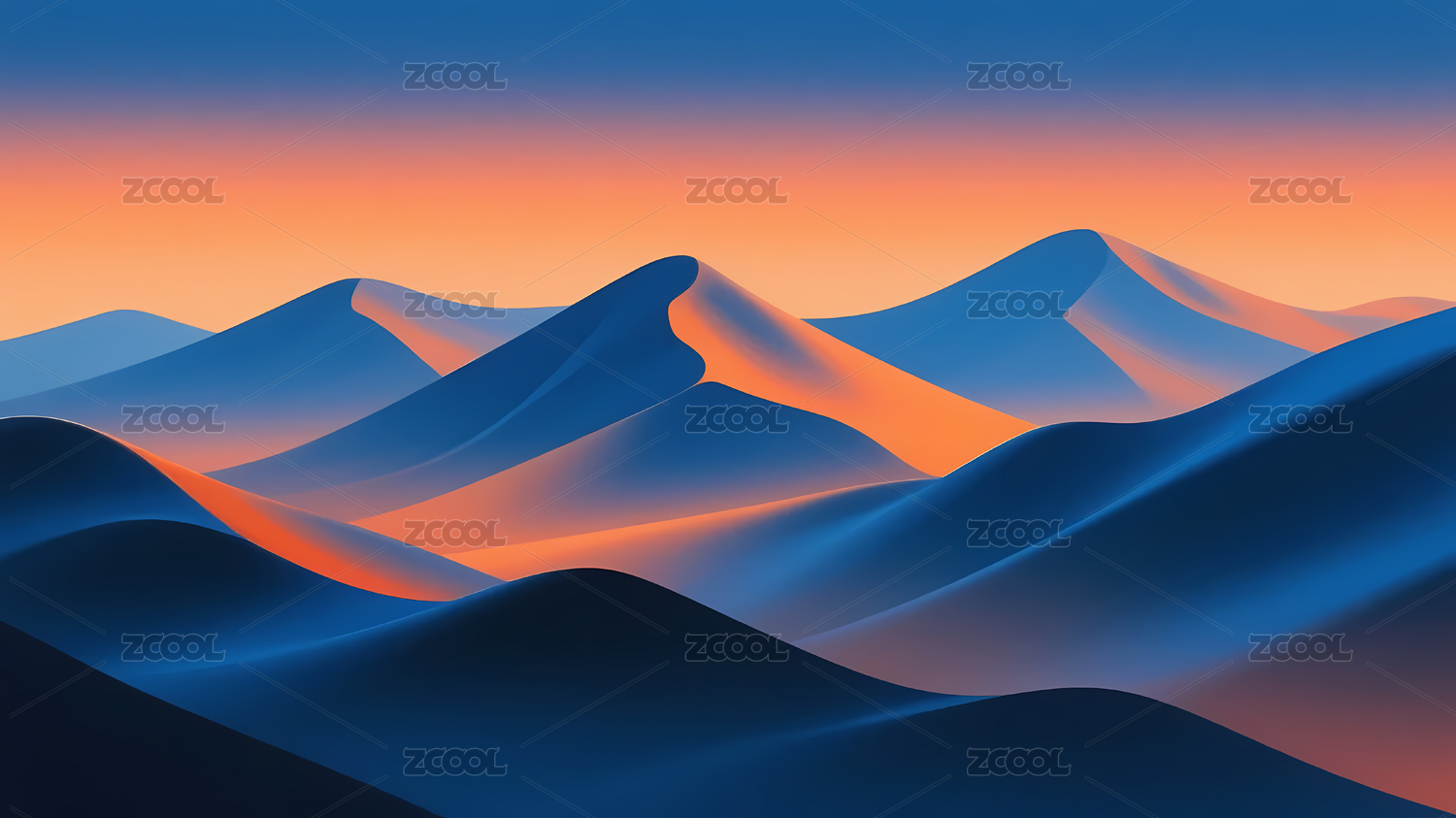 橙色,蓝色,渐变,背景,天空,自然,宁静,沙丘,山丘,起伏
