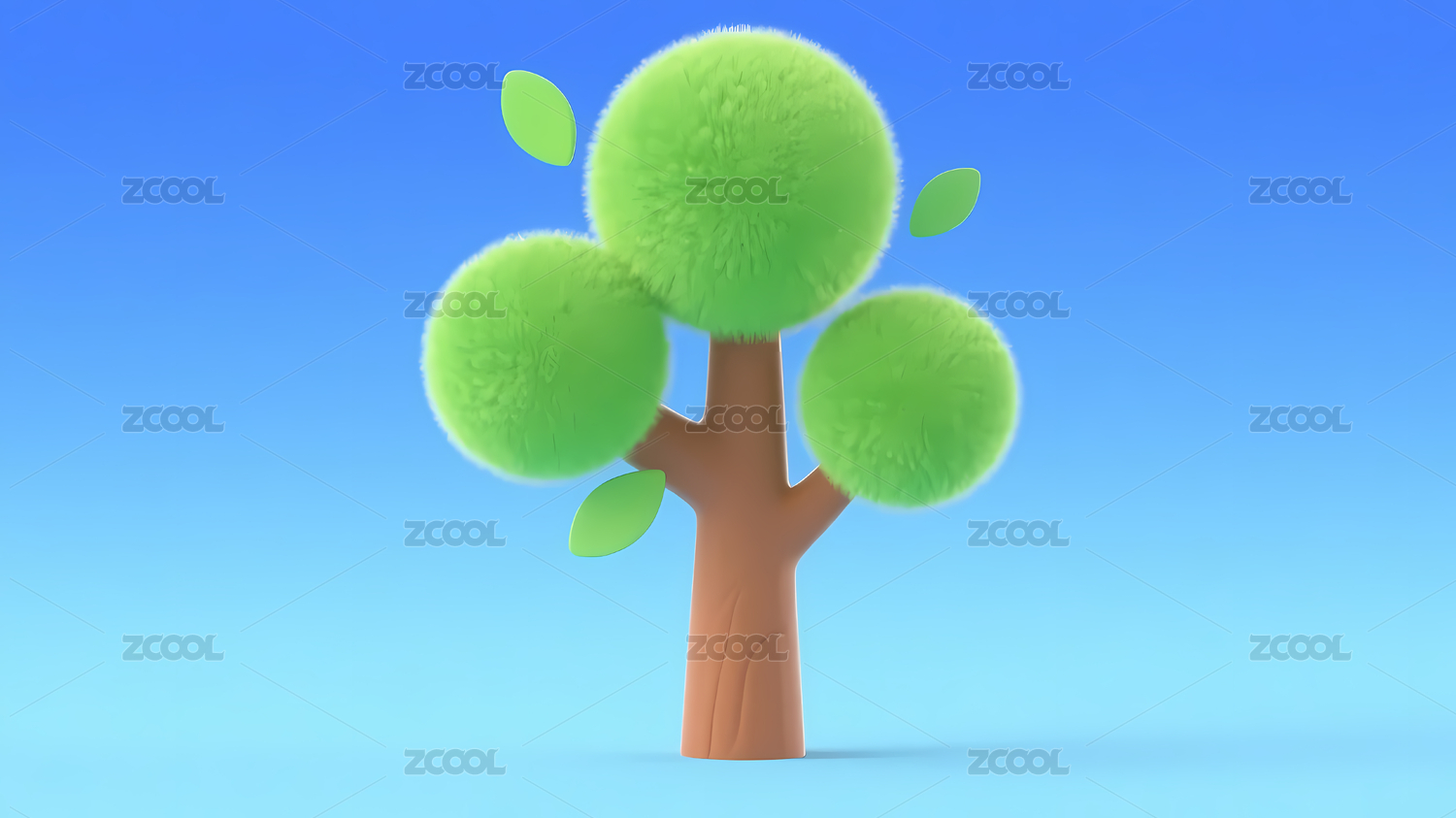 可爱治愈一棵充气圆球叶子的树3D卡通插画