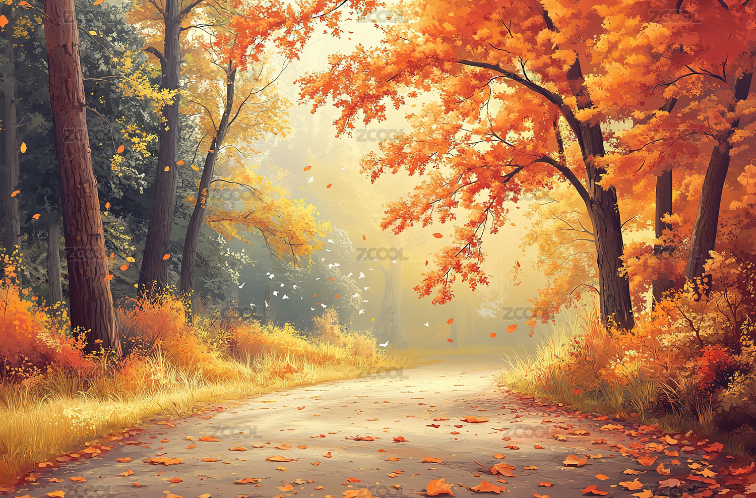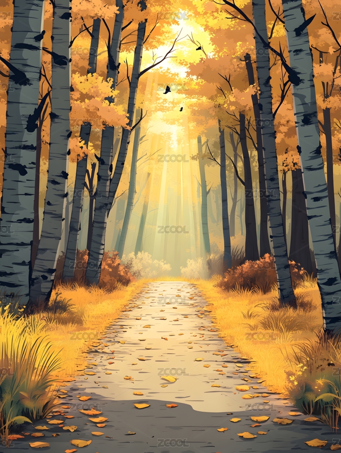 色彩,阳光,宁静,光影,自然,树木,林间,小道,树梢,金黄