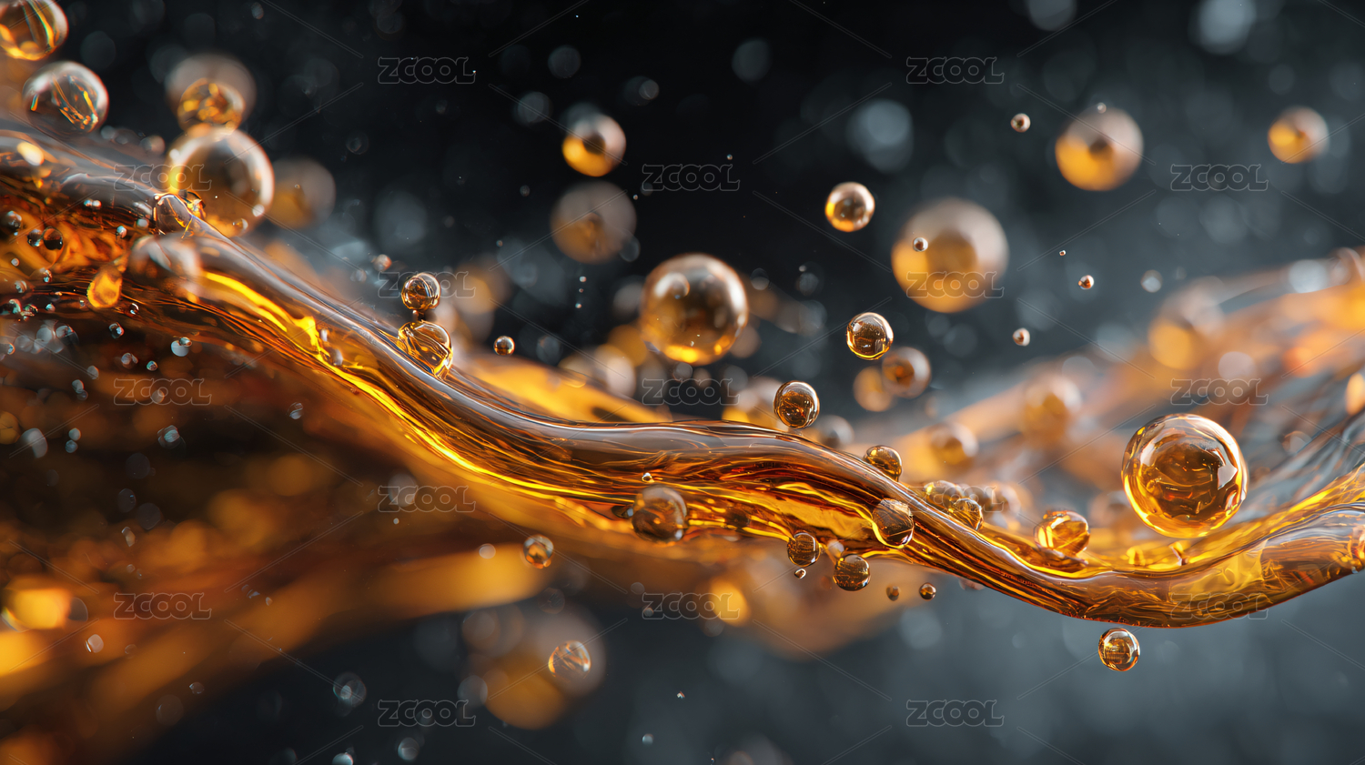 金色液体与水珠