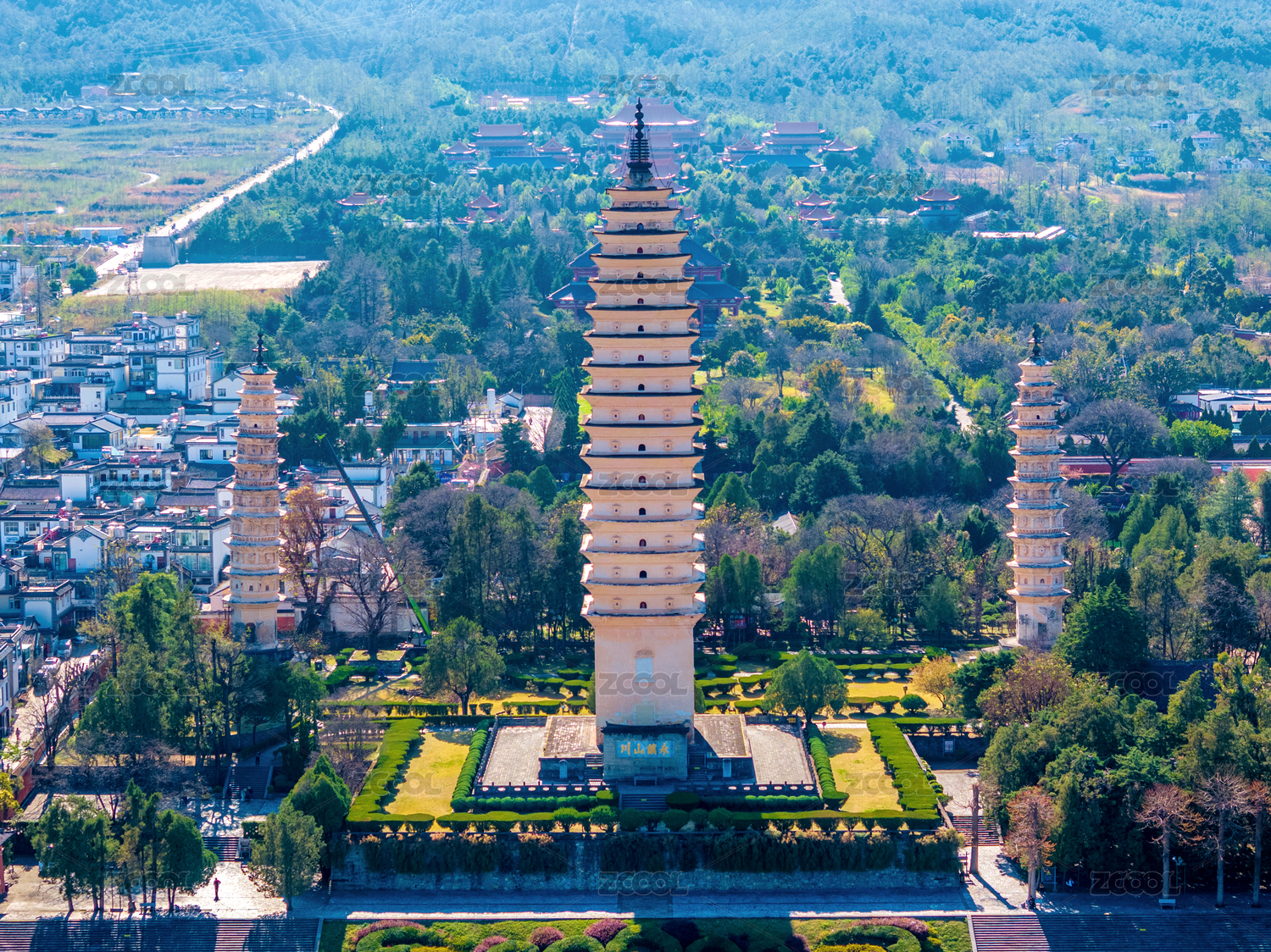 中国,云南,大理,云南省,大理州,崇圣寺三塔文化旅游区,航拍,风光,崇圣寺三塔,崇圣寺