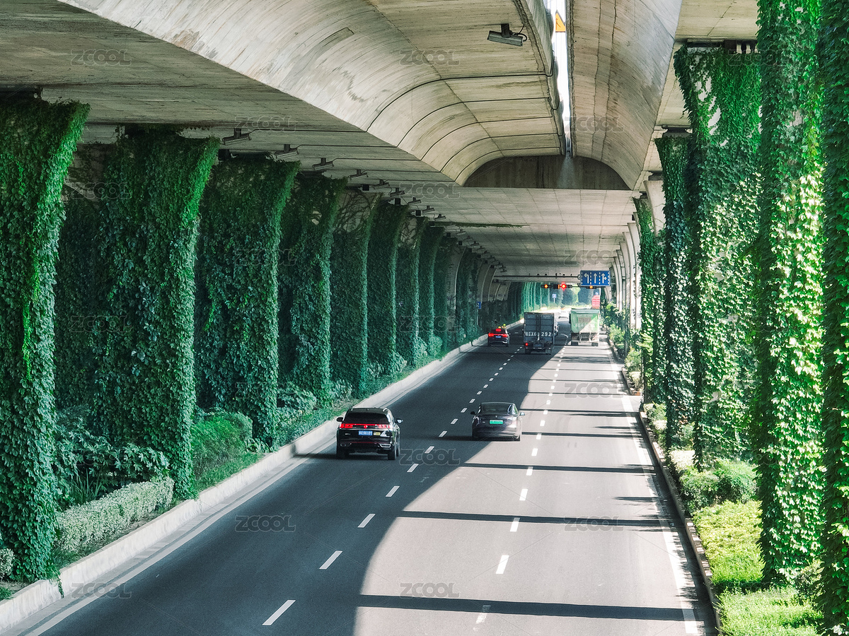 中国四川成都凤凰山高架桥金凤凰立交爬山虎