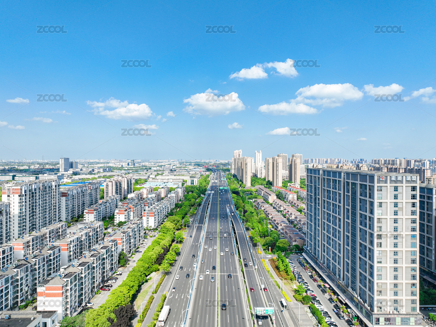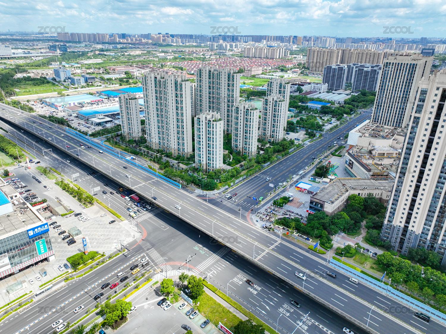 航拍,昆山,昆山航拍,城市全景,蓝天白云,高层建筑,城市道路,河道桥梁,住宅小区,城市绿化